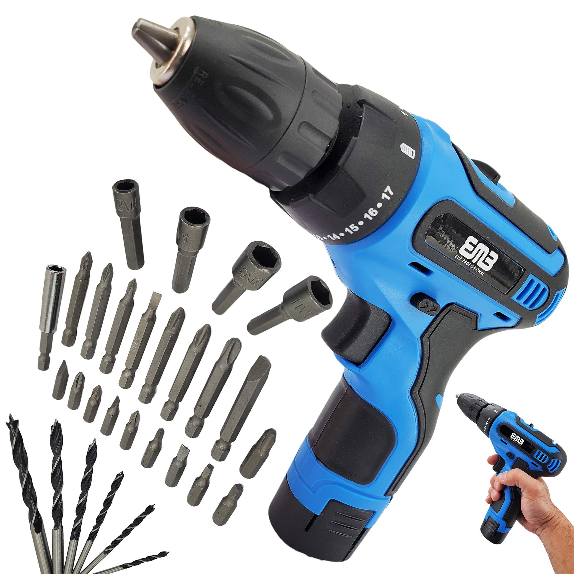 EMB ET-06 12V Cordless Lithium Battery Drill Driver with 3/8" Chuck, Adjustable Speed & LED Light
