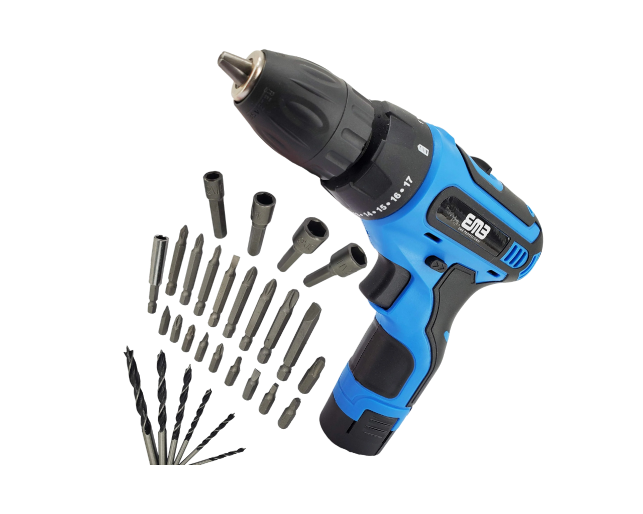 The EMB ET-06 12V Cordless Drill Driver is built for maximum efficiency and performance. Equipped with a 1300mAh lithium-ion battery, this drill delivers long-lasting power for your home improvement and DIY projects. Whether you're drilling into wood, metal, or plastic, the high torque and adjustable speed (0-1300 RPM) ensure you have the right power for every task. The easy-to-install and remove slide pack battery design allows for quick battery changes, ensuring you stay productive.
