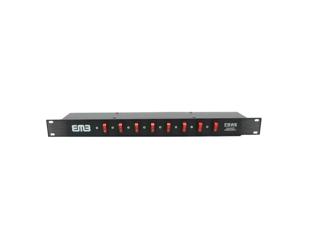 Designed for efficiency, the EMB EBW8 easily mounts into standard 19-inch racks, making it perfect for live sound systems, recording studios, and AV installations. Its rugged metal housing provides durability, while the front-panel power switch offers easy access. This power supply keeps your devices organized and protected, ensuring a seamless and professional workspace.