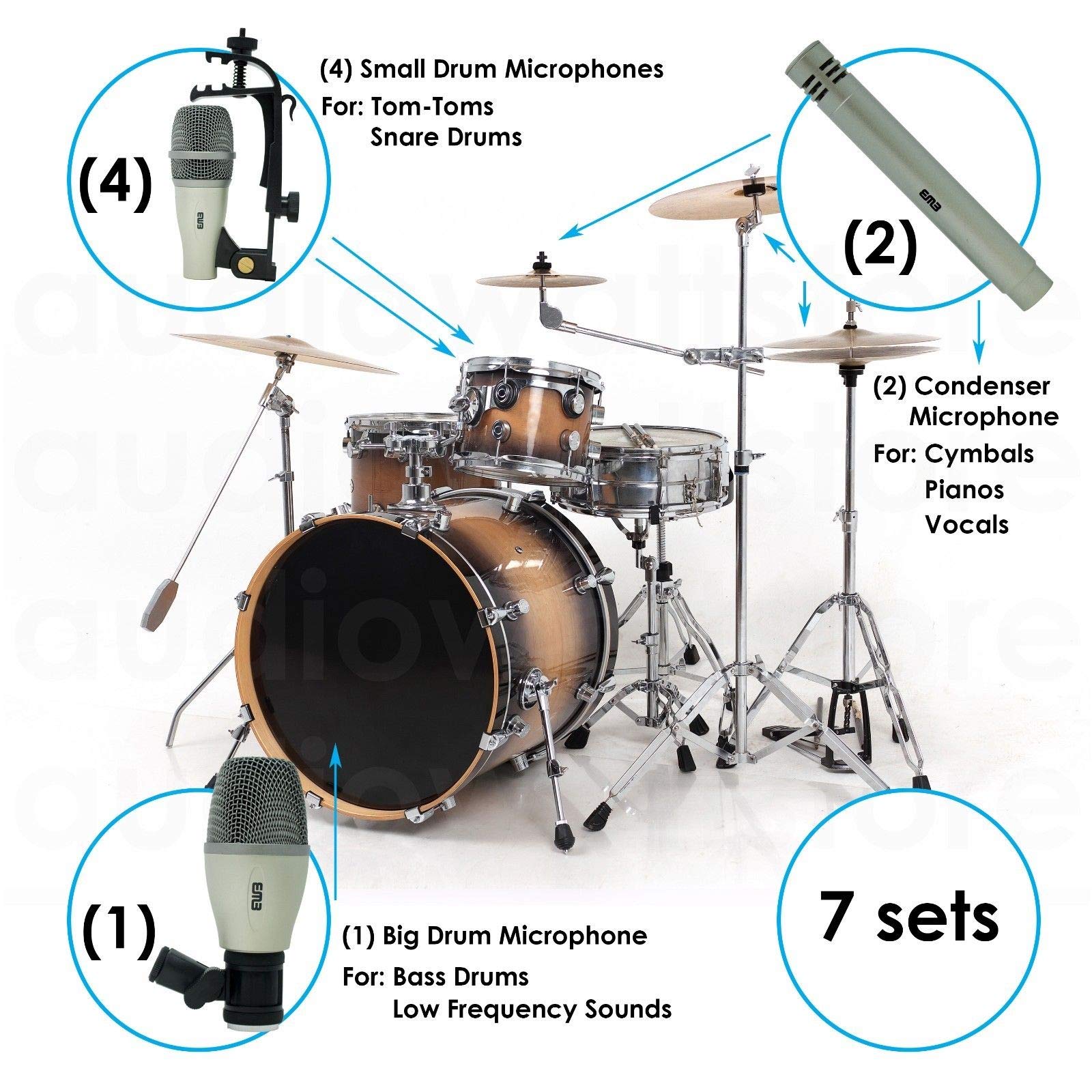 • Complete 7-Piece Drum Microphone Kit – Includes (1) big drum mic, (4) small drum mics, (2) condenser mics, and essential mounting accessories.
