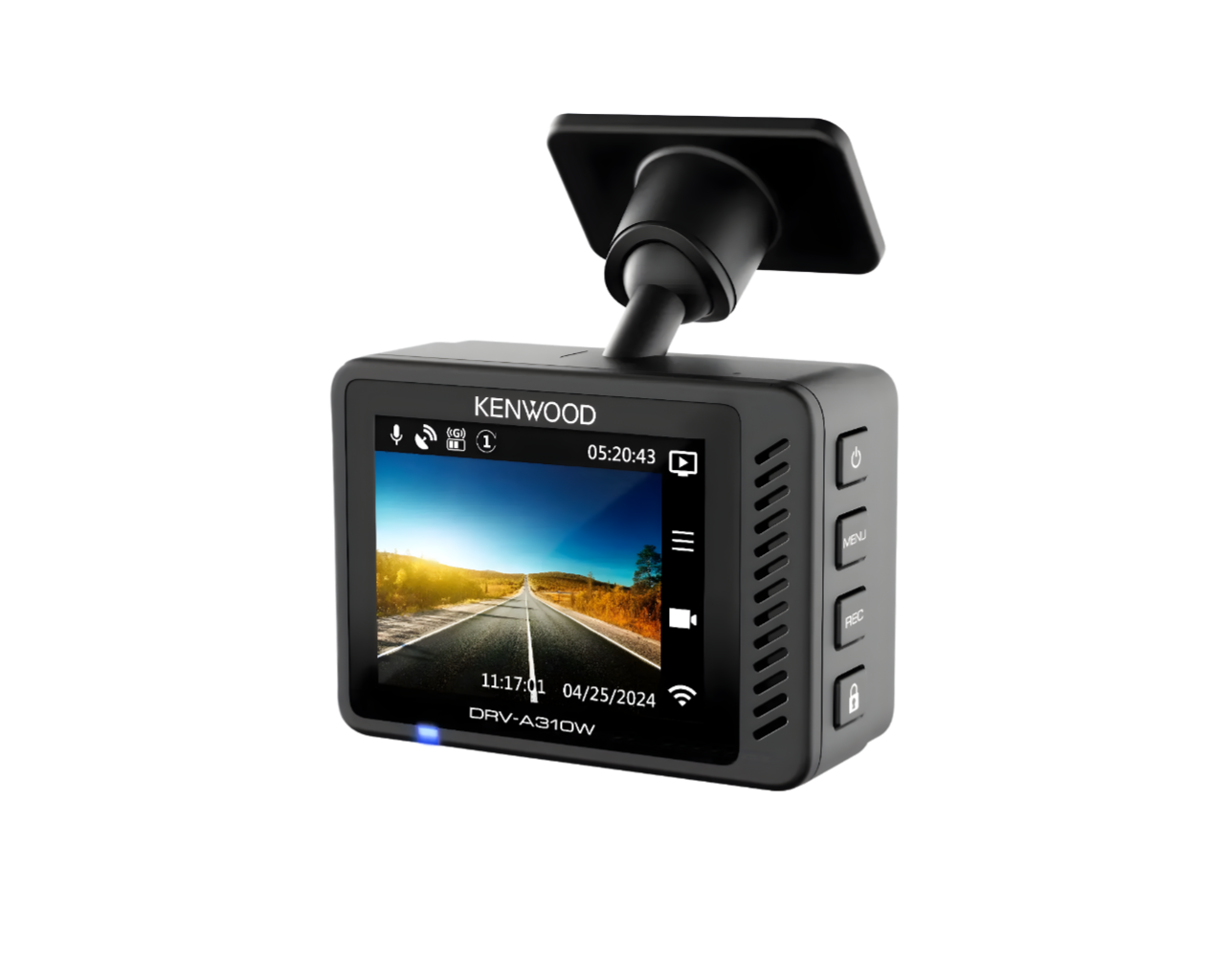 The Kenwood DRV-A310W Dash Cam is a compact and feature-rich car camera designed for ultimate safety and convenience. With 2 MP Full HD recording, HDR/WDR technology, and a 2" LCD display, it captures every detail of your drive, day or night. Access your footage wirelessly via Bluetooth and Wi-Fi using the KENWOOD DASH CAM MANAGER app, and enjoy peace of mind with collision detection, GPS geo-tagging, and smart parking mode. Add the optional KENWOOD KCA-R110 rear camera for enhanced rear visibility.