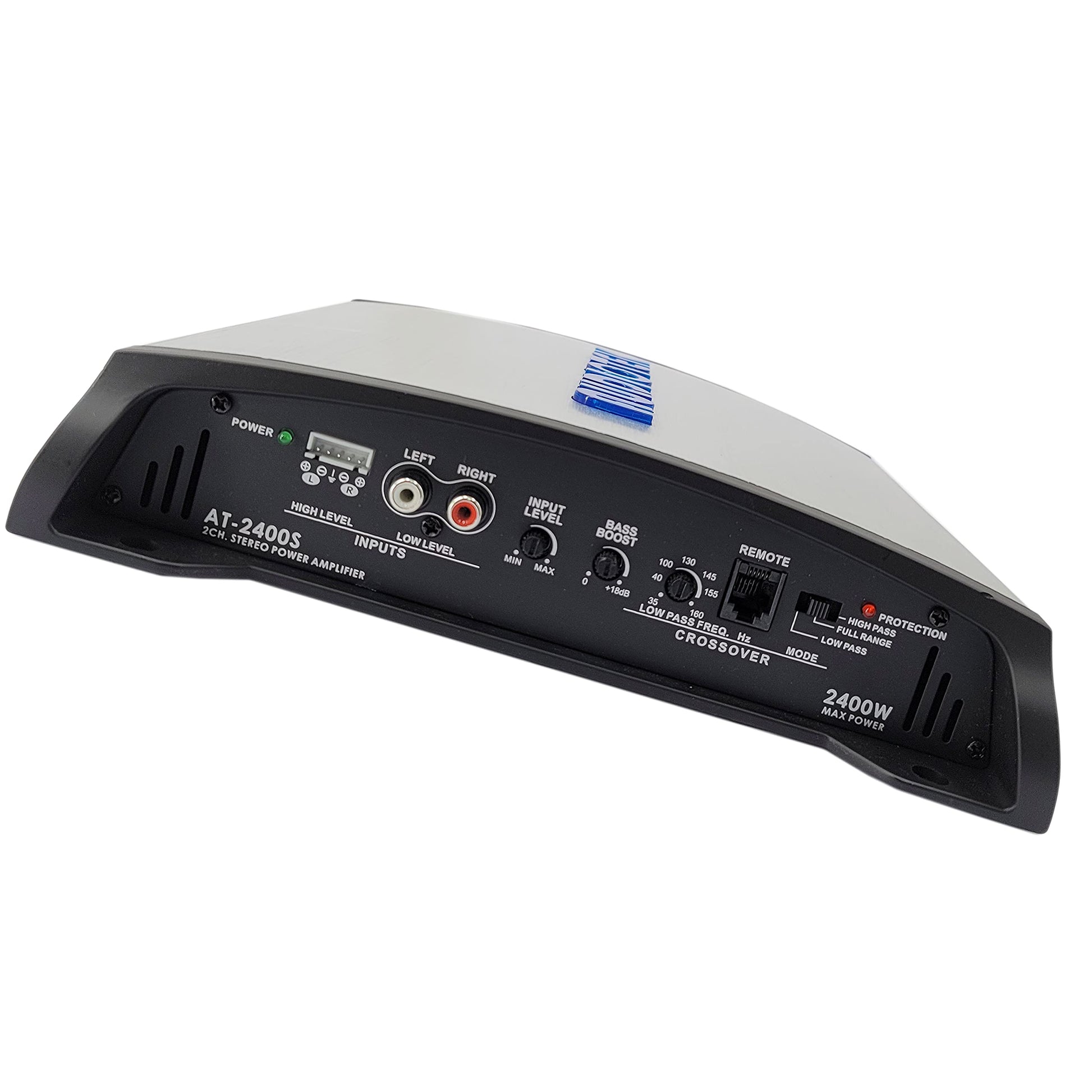Upgrade your car audio experience with the Audiotek AT2400S 2-Channel Car Amplifier, delivering 2400 watts of peak power for clear, powerful sound. This full-range amplifier is designed to enhance your audio system with deep bass, crisp highs, and a distortion-free listening experience. With Class A-B operation, this amplifier ensures optimal performance for both speakers and subwoofers, making it the perfect choice for music lovers who want more power and clarity on the road.