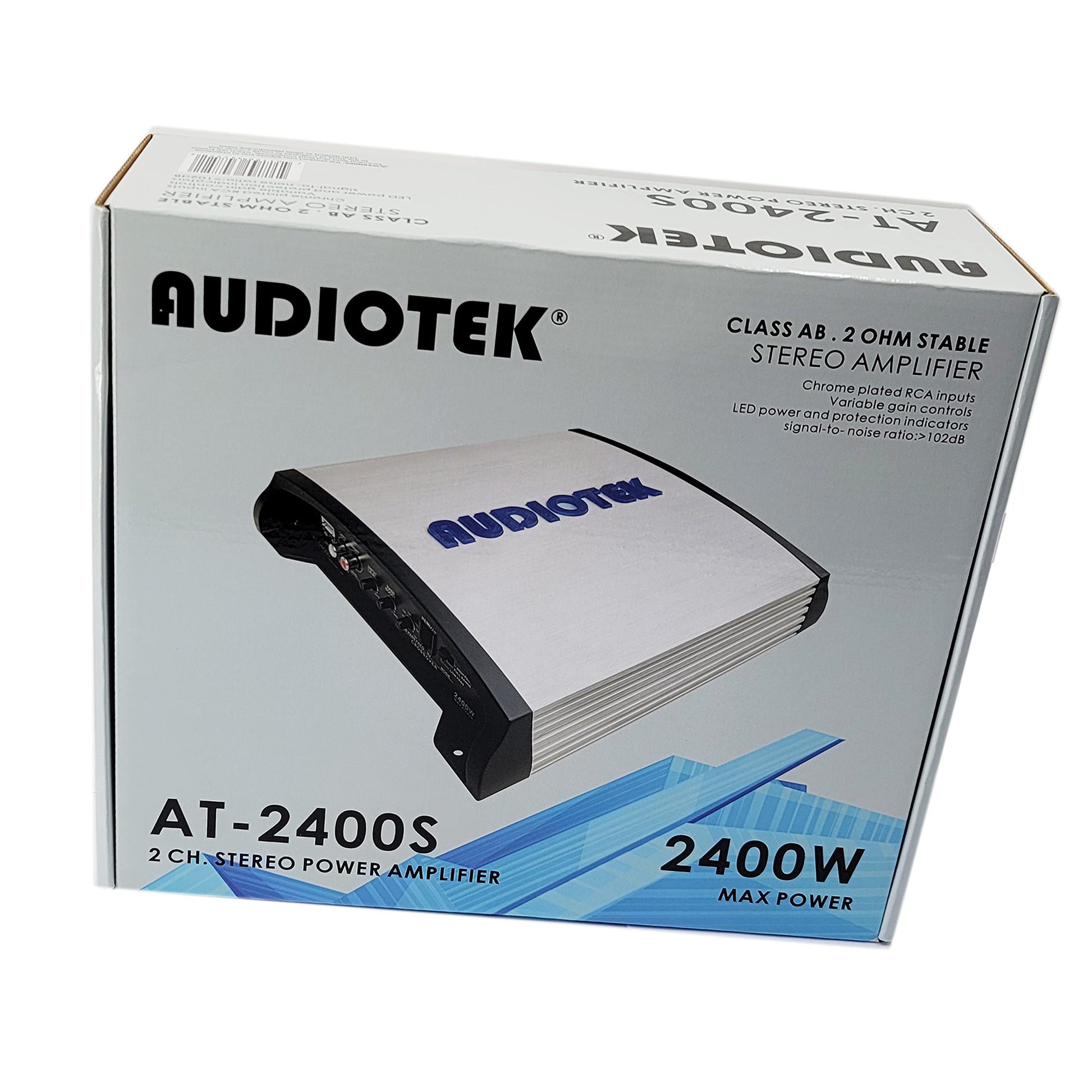 Audiotek AT2400S 2-Channel 2400W Stereo Car Amplifier – High-Power, 2 Ohm Stable, Full Range with Bass Boost & LED Indicators