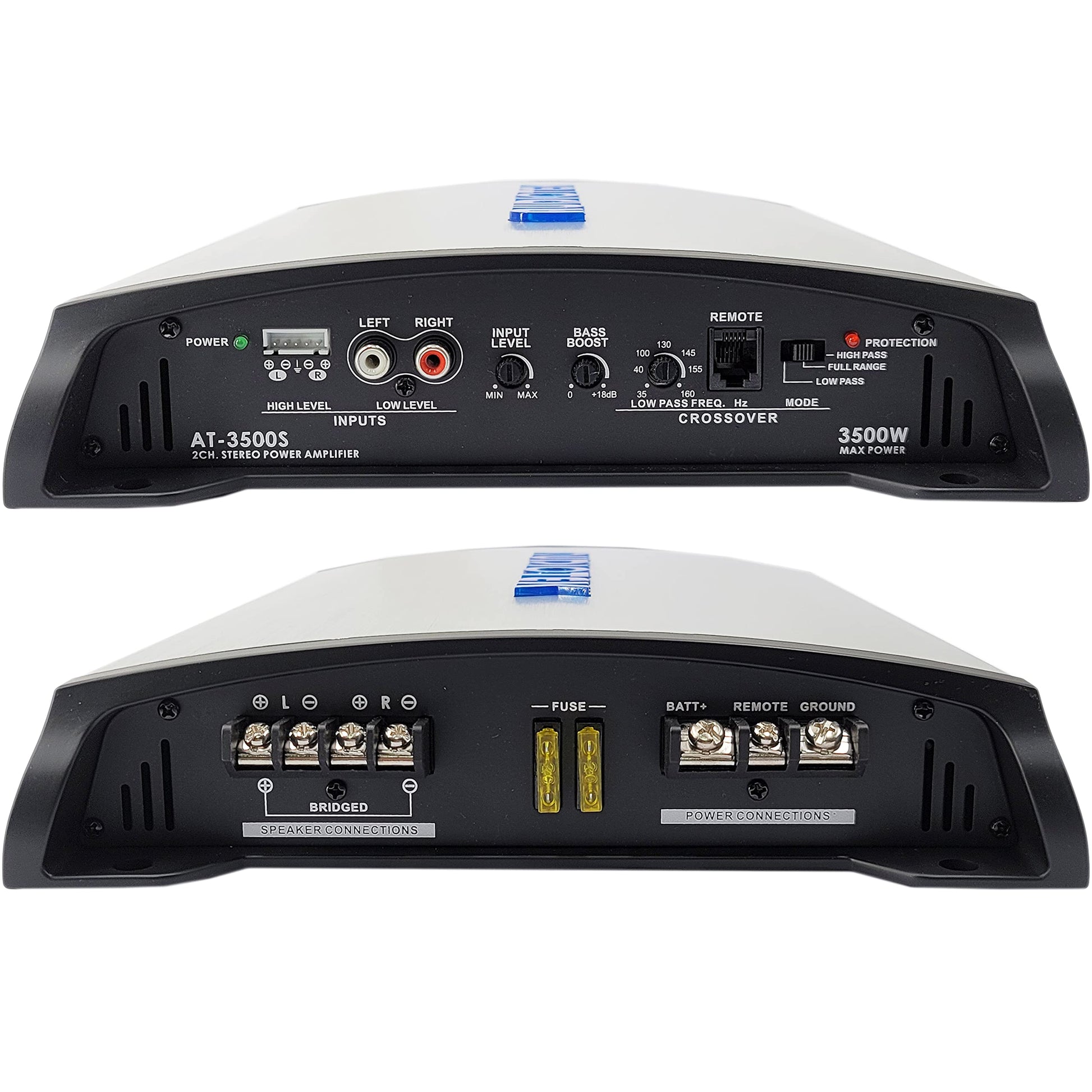 Audiotek AT3500S 2-Channel Stereo Car Amplifier – 3500W, 2 Ohm Stable, Class A-B, MOSFET Power Supply, Bass Knob Included