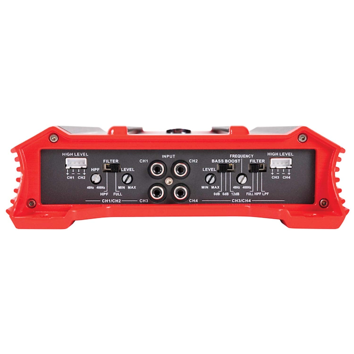 - 4-channel amplifier for versatile speaker and subwoofer configurations