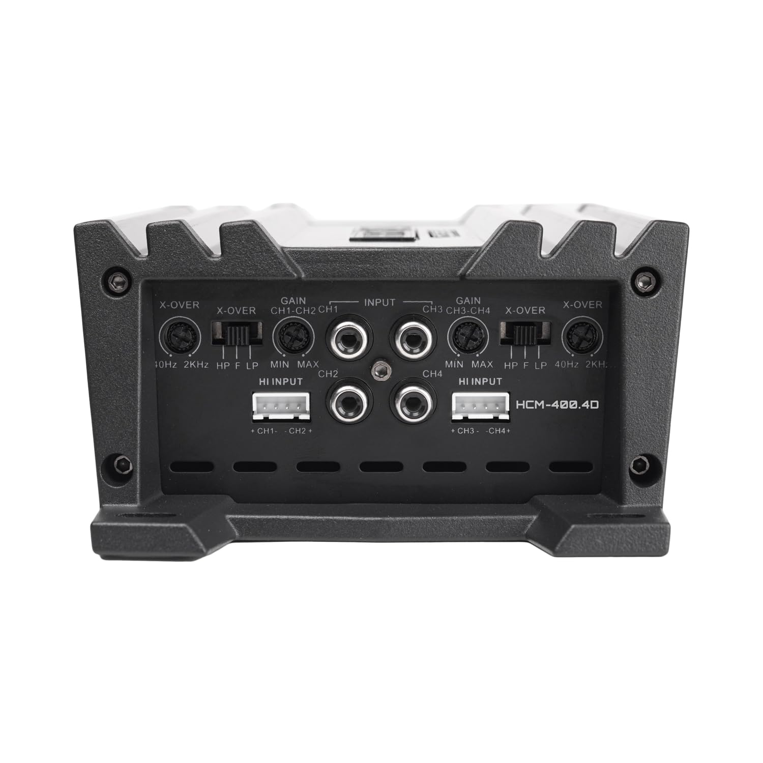 Despite its compact size, the HCM-400.4D amplifier is engineered to perform under pressure. The mass-loaded extruded aluminum heat sink effectively dissipates heat, allowing the amplifier to deliver continuous performance without the need for fan cooling. Whether you're installing it in a tight space or need to push it for extended periods, this mini amplifier’s advanced thermal design guarantees it stays cool while maintaining superior audio output. It’s built to last, even in demanding environments.