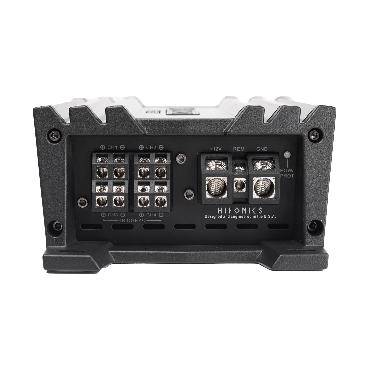 Equipped with Ultra-Fi MOSFETs, the Hifonics Colossus Mini HCM-400.4D ensures optimal power delivery and thermal dissipation for exceptional sound quality. The amplifier is designed with triple protection circuits, safeguarding your system from over/under voltage, short circuits, and thermal damage. Nickel-plated RCA inputs and molded connection terminals provide secure, corrosion-resistant connections for long-term reliability. This amp is not only powerful but also offers peace of mind for users seeking durable, high-quality audio equipment.