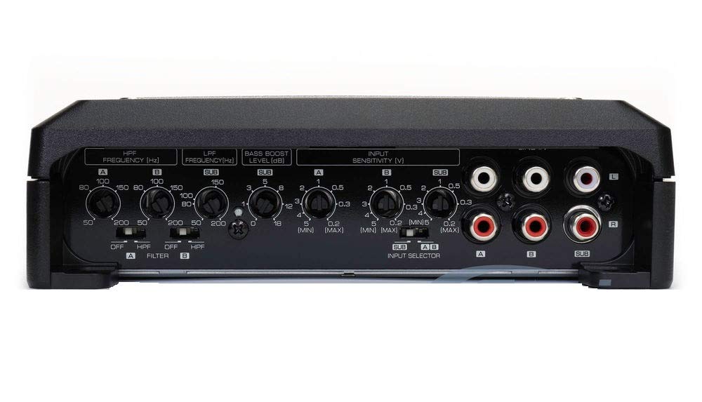 Kenwood’s KAC-D8105 5-Channel Amplifier is designed for true audio enthusiasts, offering a balanced mix of power, clarity, and control. This Class D amplifier features a maximum power of 1,600 watts, delivering 75 watts RMS to each of the four channels at 2 ohms and 500 watts RMS to the dedicated subwoofer channel. With both high- and low-pass filters and a bass boost function, it allows for precise tuning to enhance every frequency. This amplifier’s efficient Class D design also ensures minimal heat output, making it a reliable addition to your car audio setup.