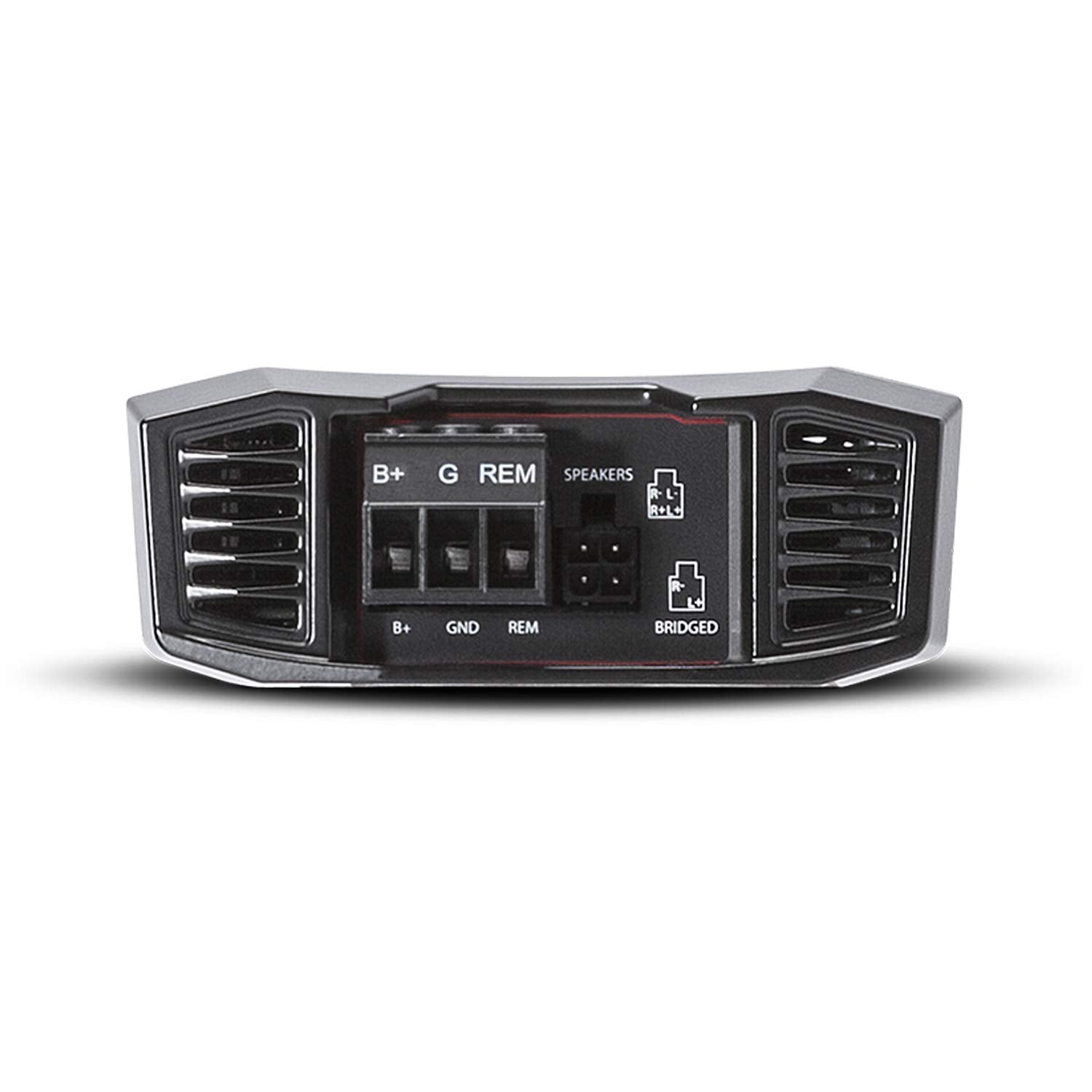 - 400 Watts of Power – Delivers 200 watts RMS per channel at 4-ohm or 2-ohm, and 400 watts bridged at 4-ohm for maximum output.