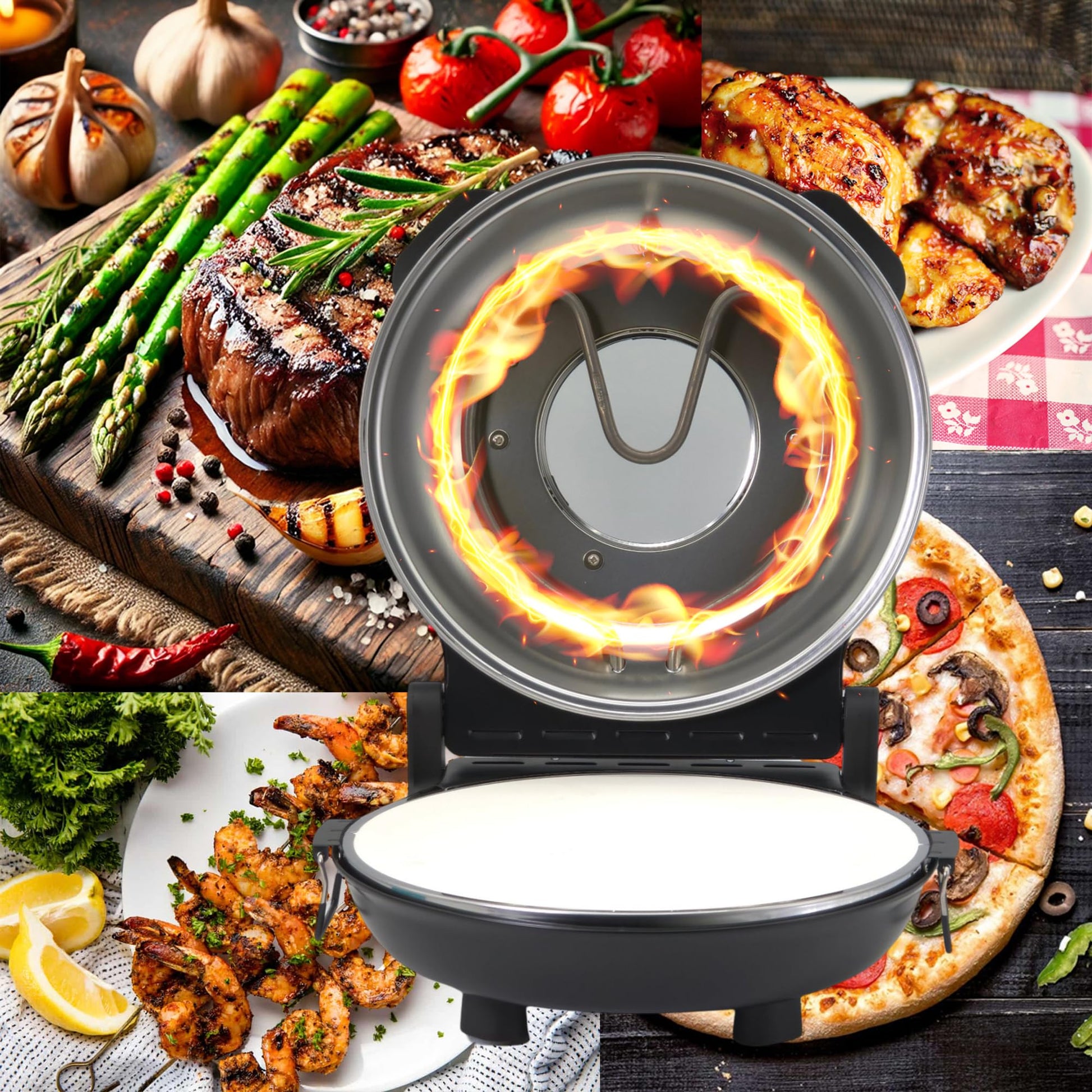 Unlike conventional ovens that max out at 450–500°F, this powerful pizza oven reaches up to 800°F, delivering the golden crust and charred flavor found in restaurant pies. The included 12” removable ceramic pizza stone distributes heat evenly across the base, ensuring consistent results and easy cleaning after every use.