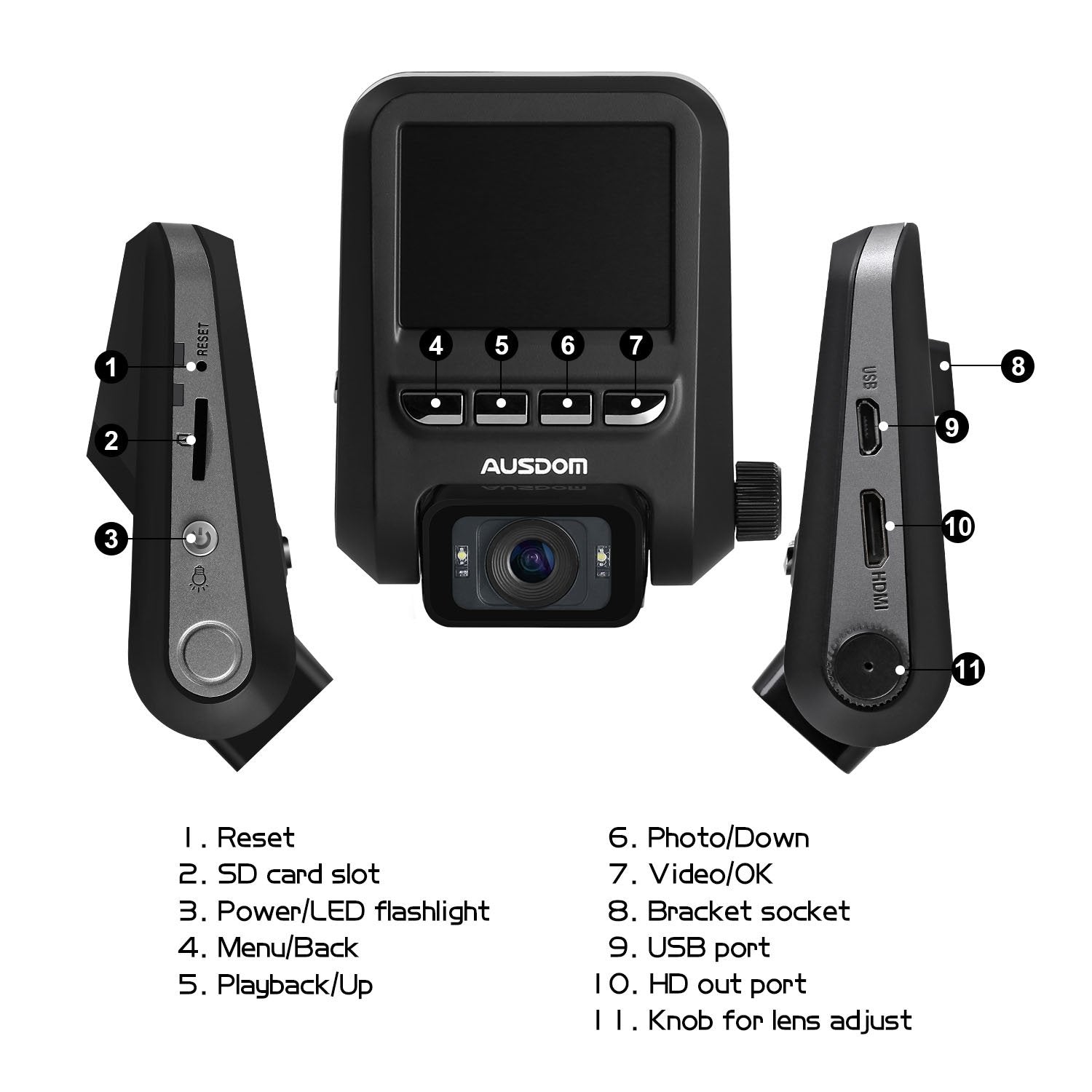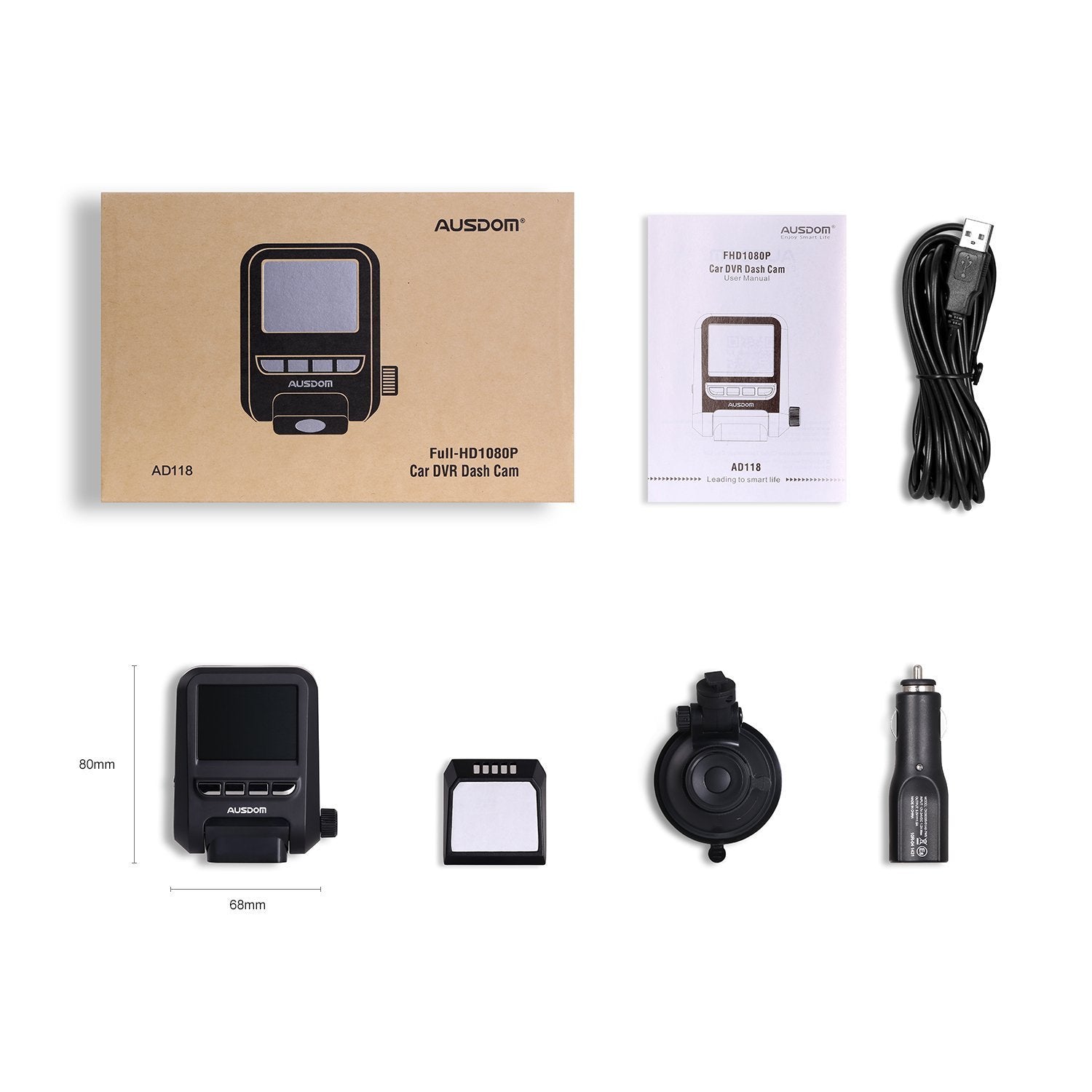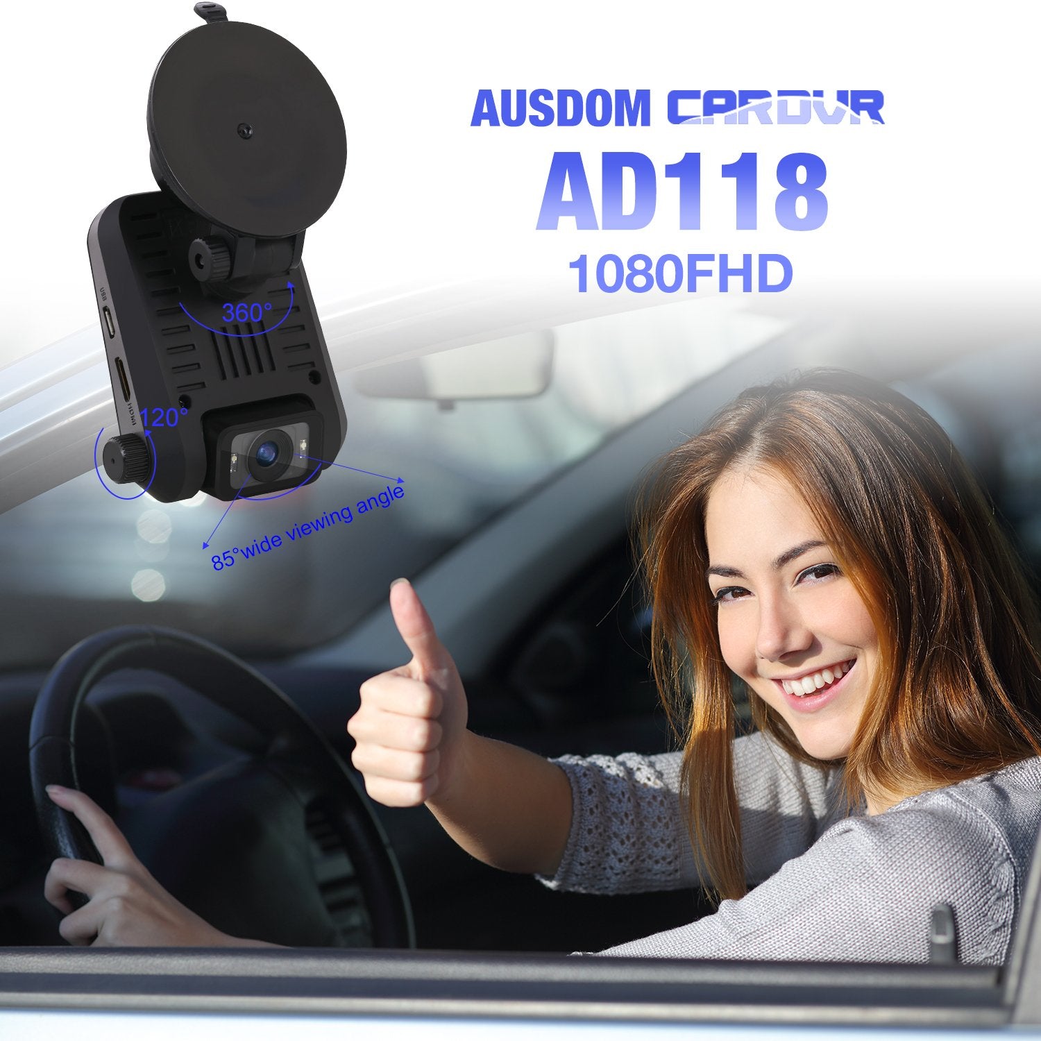 Ausdom AD118 Car DVR Dash Cam Digital Video Recorder with 2-Inch FHD 1080p Resolution, WDR, 6-Glass Lenses, Motion Detection and Loop-Cycle Recording