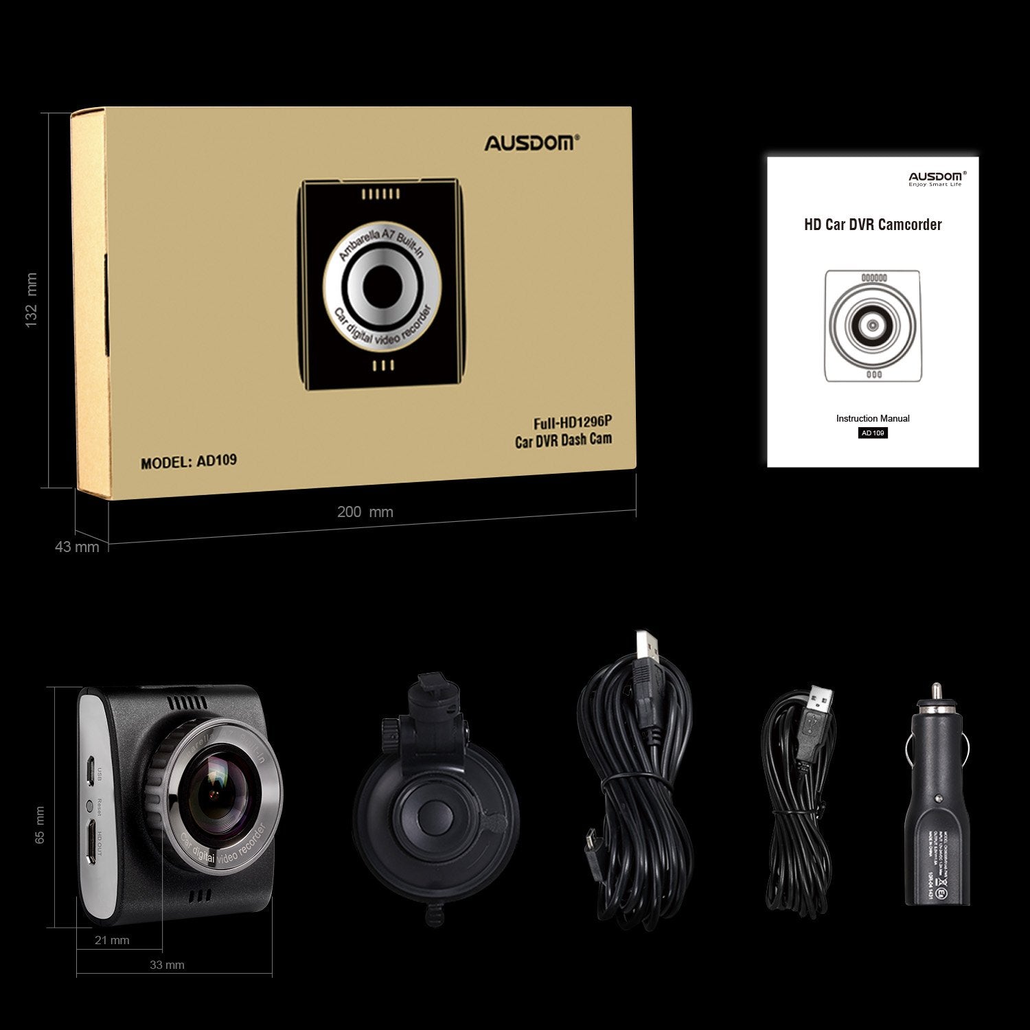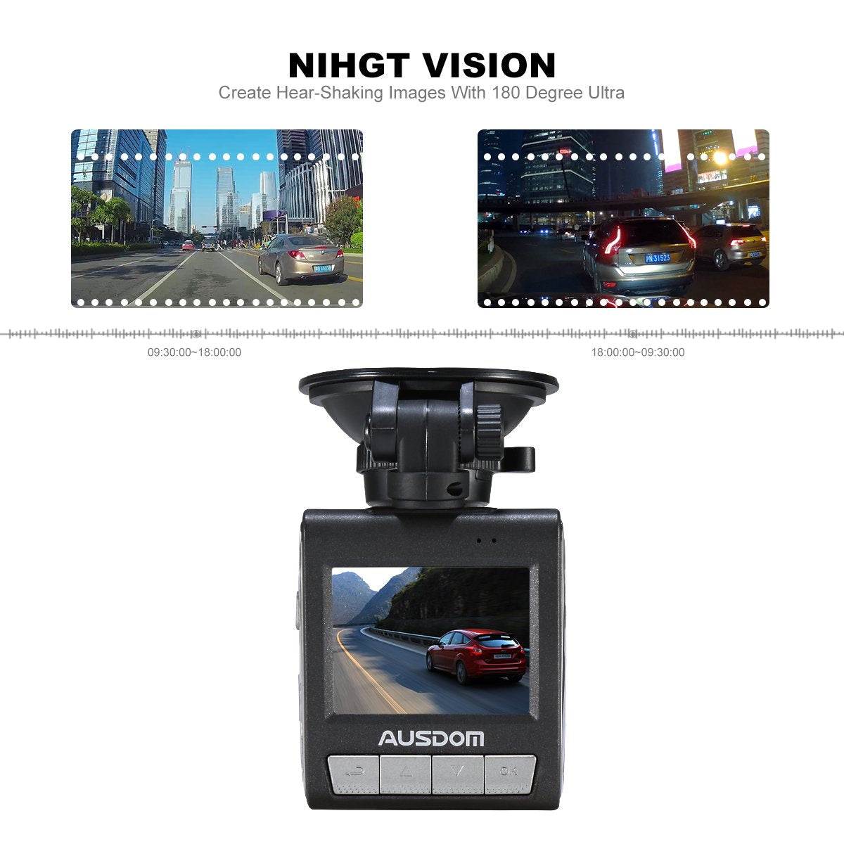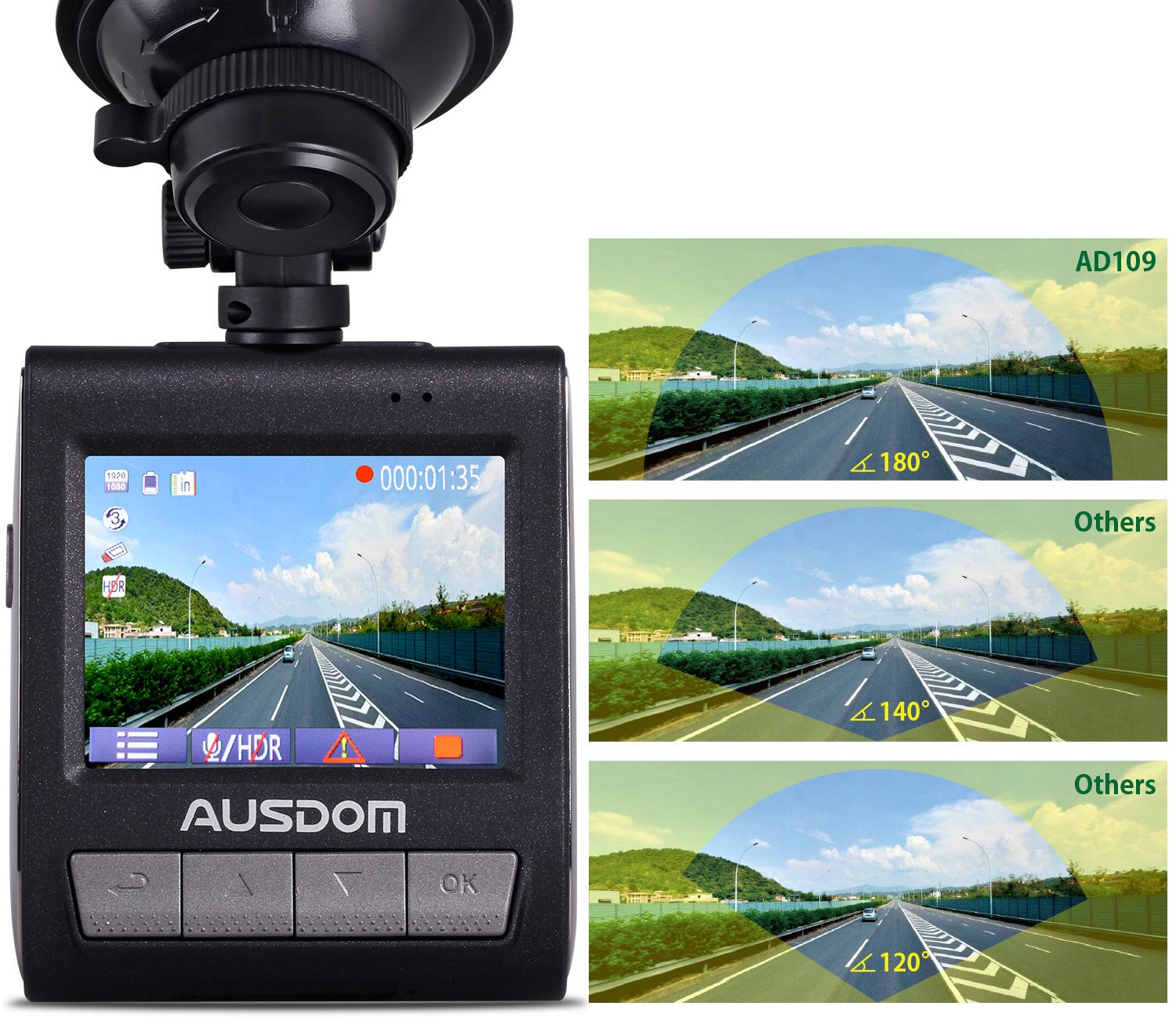 AUSDOM AD109 Dashboard Camera Recorder - Dash Cam Car DVR with 180 Degree Wide Angle Lens, Super Night Vision, G-Sensor, and Parking Monitor
