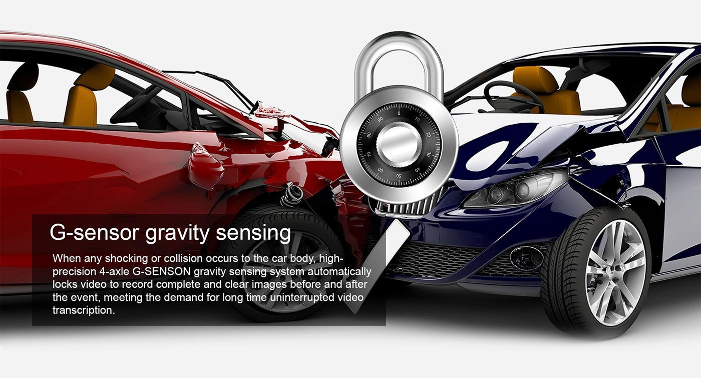 - G-Sensor Technology – Automatically detects collisions or impacts and locks the video footage for later review.
