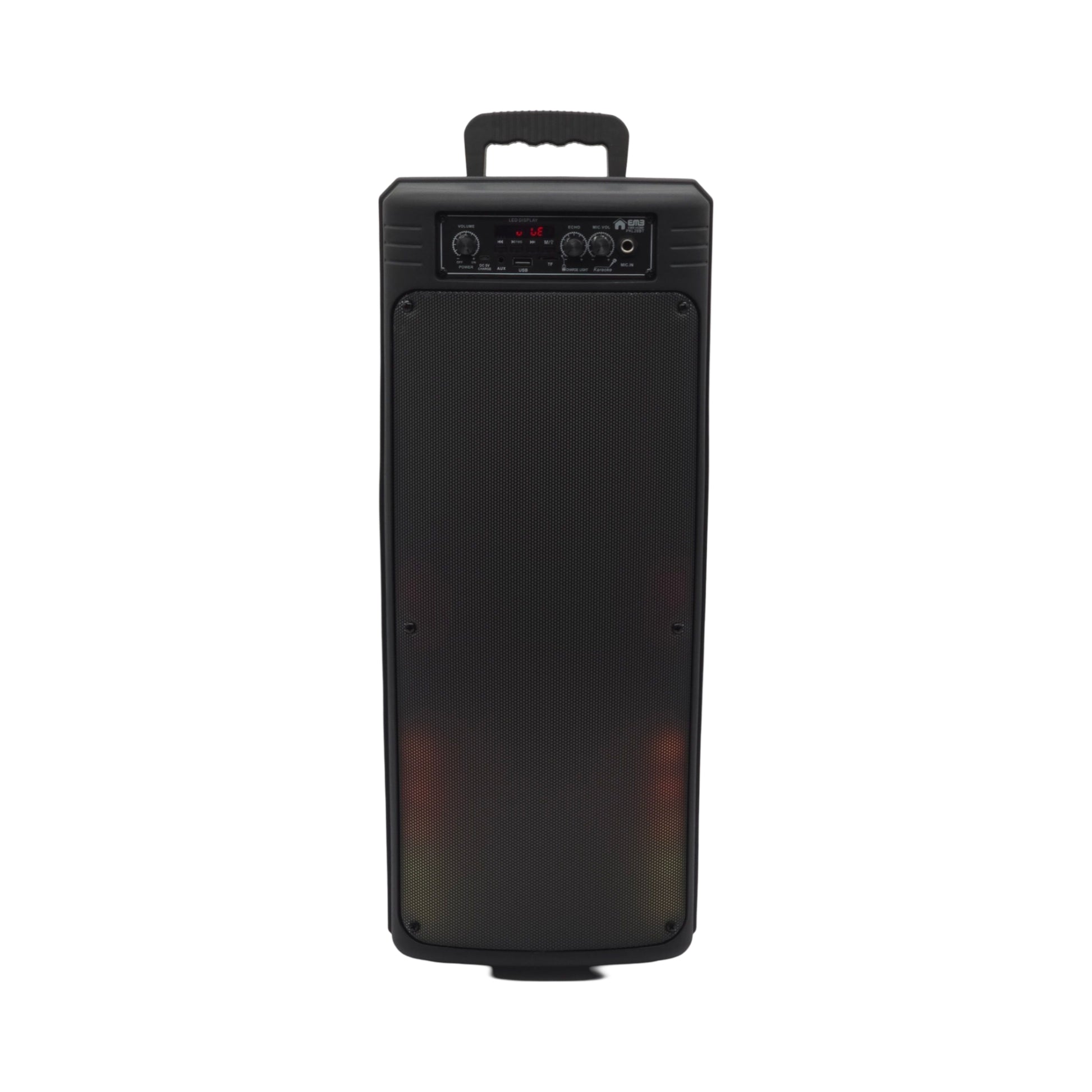 Equipped with Bluetooth, FM radio, USB, TF card, AUX, and mic inputs, the EMB PKL28BT offers multiple ways to play your favorite tunes. Independent volume controls for music, bass, treble, microphone, and echo allow you to fine-tune the sound to your preference. Special functions like mic priority and recording make this speaker an excellent choice for karaoke and events. With its durable plastic cabinet and universal compatibility, this speaker is built to deliver high-performance audio anytime, anywhere.
