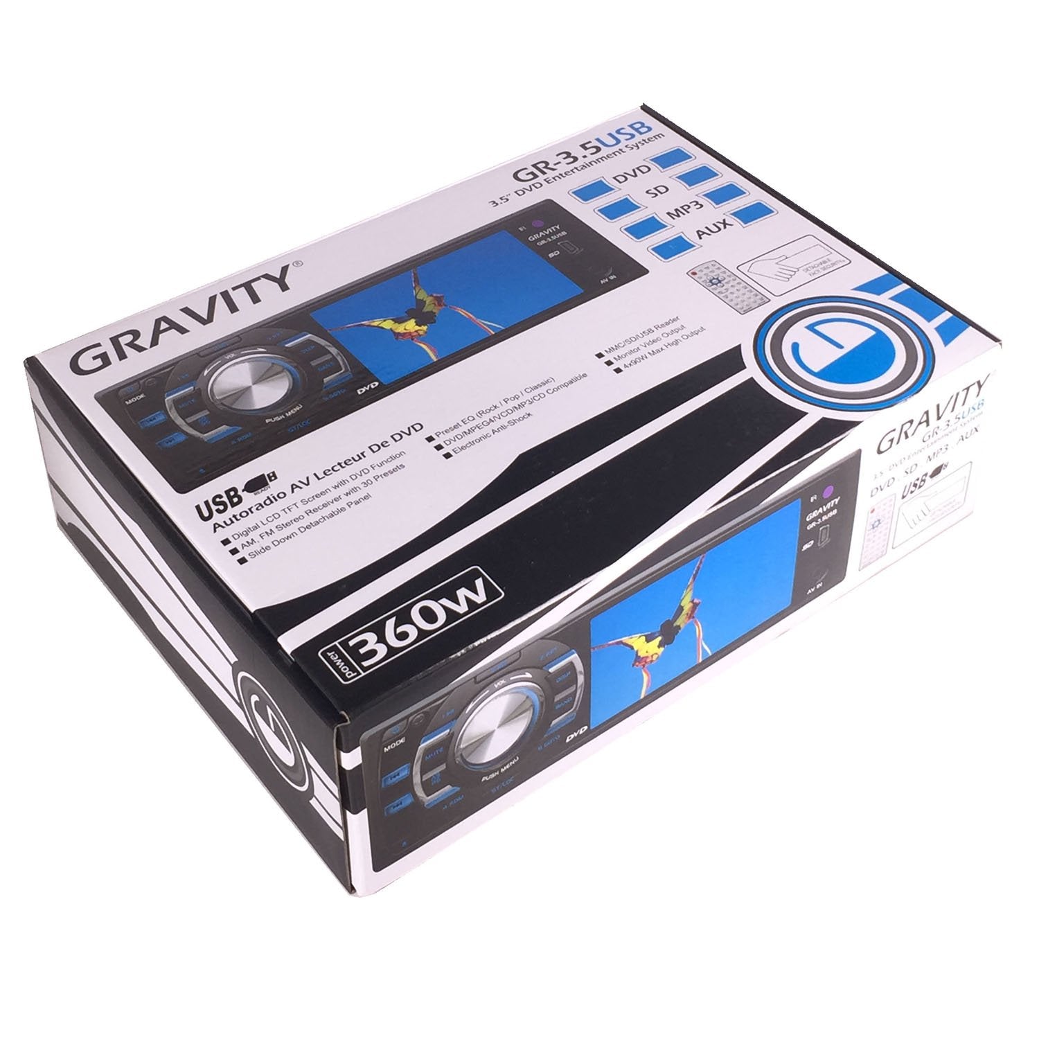 Gravity GR-3.5USB 3.5" DVD Entertainment System – Touch Screen, 360W Max Power, AM/FM Stereo, USB/MP3/CD/AUX Compatibility