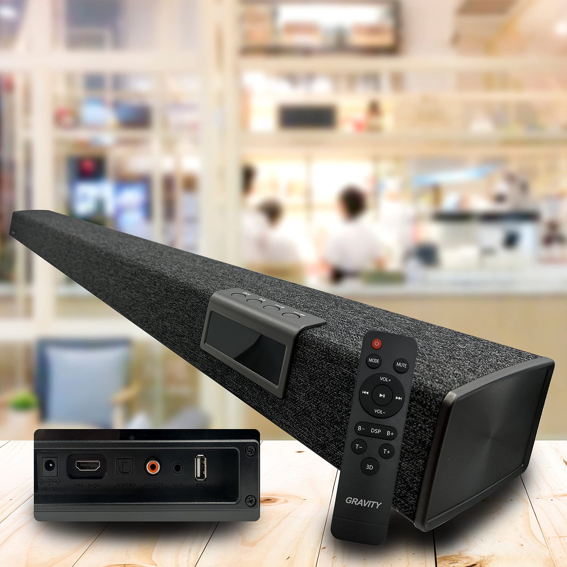 Gravity GSB500-DG 35-Inch Wireless Sound Bar for TV with Built-In Subwoofer, Bluetooth 5.0, DSP, HDMI, and Multiple Connectivity Options – Dark Gray