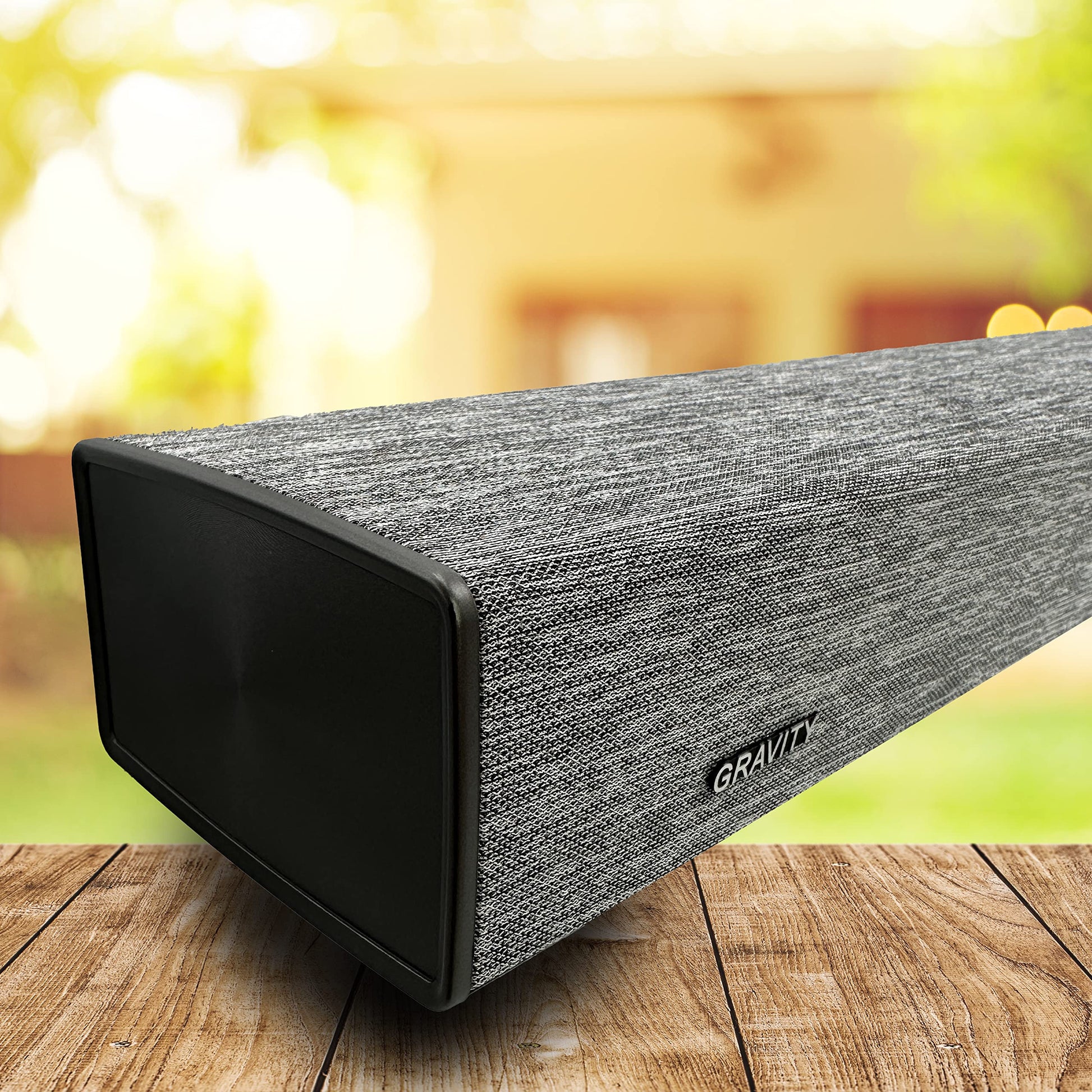 Gravity GSB500-LG 35-Inch Wireless Sound Bar for TV with Built-In Subwoofer, Bluetooth 5.0, DSP, and Multiple Connectivity Options – Light Gray