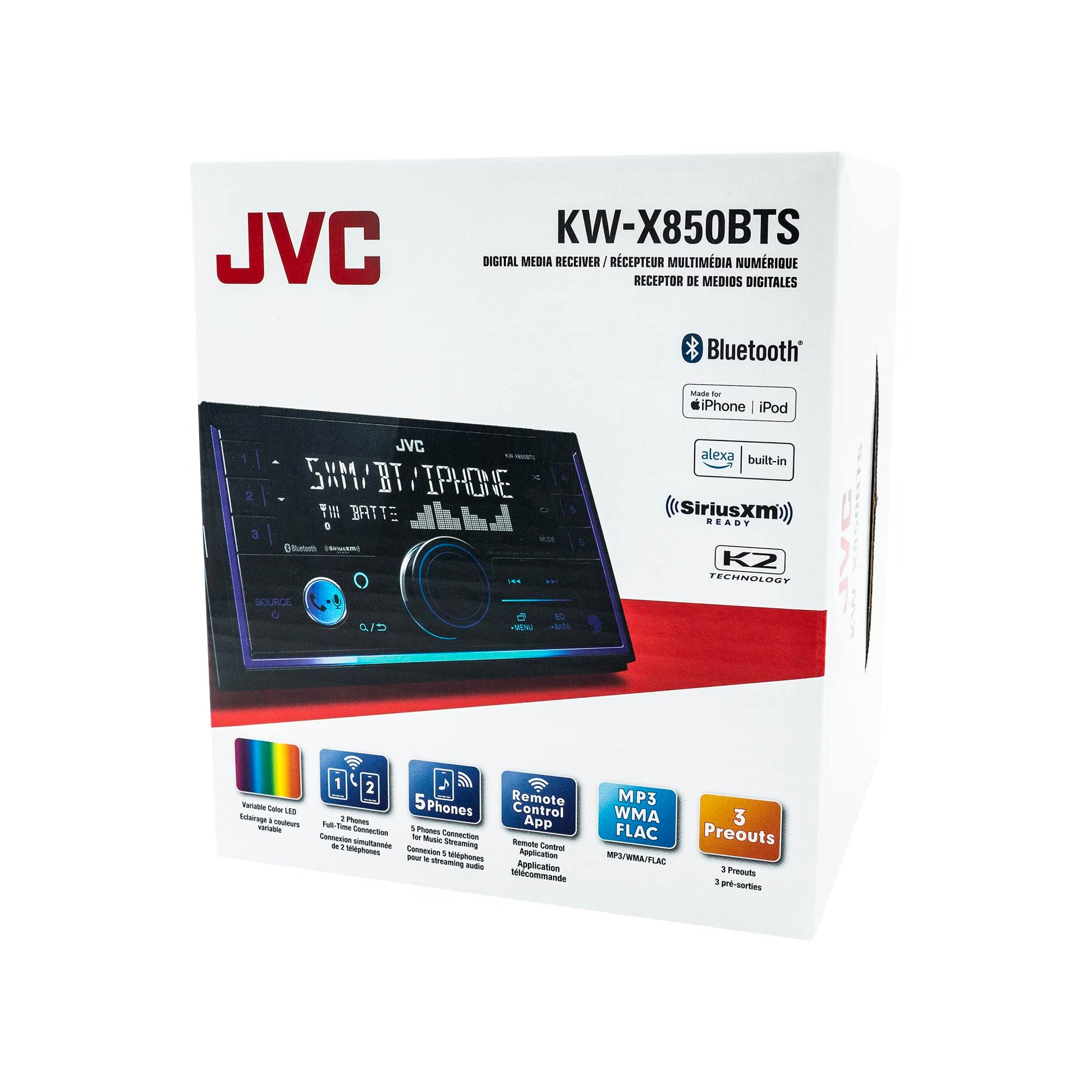 The JVC KW-X850BTS is an advanced car stereo that offers impressive expandability and versatile audio options. Enjoy a dynamic listening experience with K2 technology, which boosts sound quality across all music sources, and Sound Lift that enhances lower door speaker frequencies for clearer sound. The receiver supports high-res FLAC music files and plays them with exceptional clarity. With the JVC Streaming DJ feature, you can connect up to five Bluetooth devices, making it easy to share control over music. Whether you're streaming via Bluetooth, charging your devices, or controlling your music through Amazon Alexa, the KW-X850BTS enhances your in-car entertainment setup.