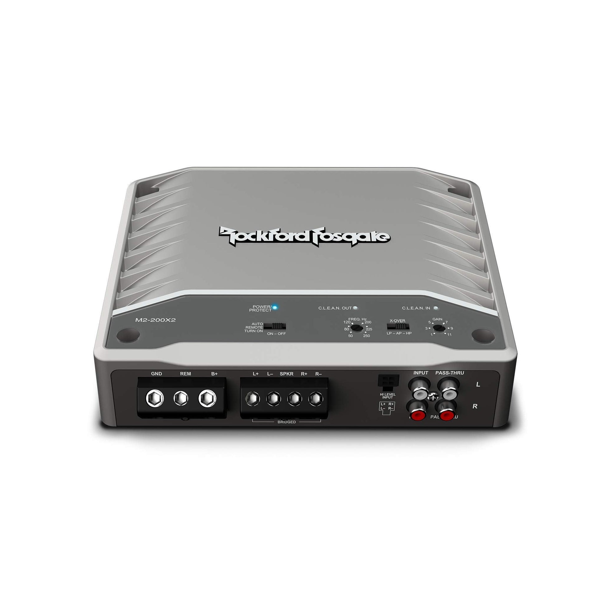 The M2-200X2 amplifier is packed with advanced features to help you achieve the best sound quality in your vehicle. It incorporates Rockford Fosgate's proprietary C.L.E.A.N. circuitry, which makes it easier to set the proper gain levels and optimize your system for distortion-free sound. The P.O.W.E.R. Supply technology boosts power as voltage increases, further enhancing performance. With these features combined with the amplifier’s durable construction and high power output, the M2-200X2 ensures a powerful, clean, and immersive listening experience.