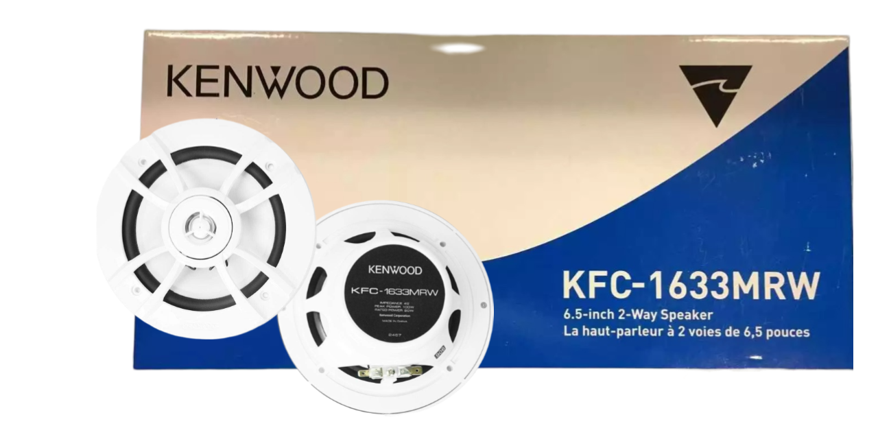 The Kenwood KFC-1633MRW 6.5-inch 2-way marine speakers are designed to enhance your outdoor sound system. Featuring a 6.5-inch woofer and a peak power rating of 100 watts, these speakers deliver robust, clear sound whether you're on the water or the trail. Their weather-resistant construction ensures long-lasting performance, even in the harshest conditions, making them perfect for use in boats and off-road vehicles.