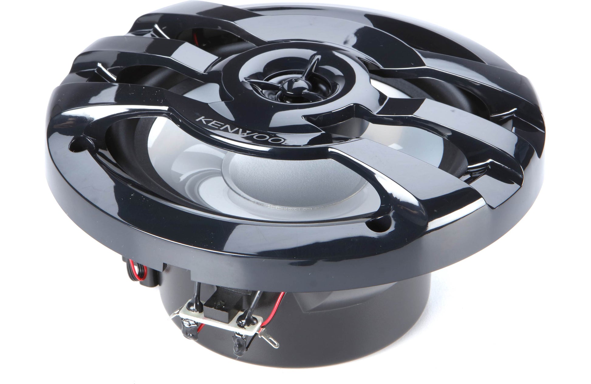 The Kenwood KFC-1673MRBL Marine/Car Speakers offer premium sound and vibrant LED lighting. With UV-resistant grilles and water-resistant woofers, these black speakers deliver crisp highs and deep bass while withstanding outdoor elements, making them perfect for cars or boats.