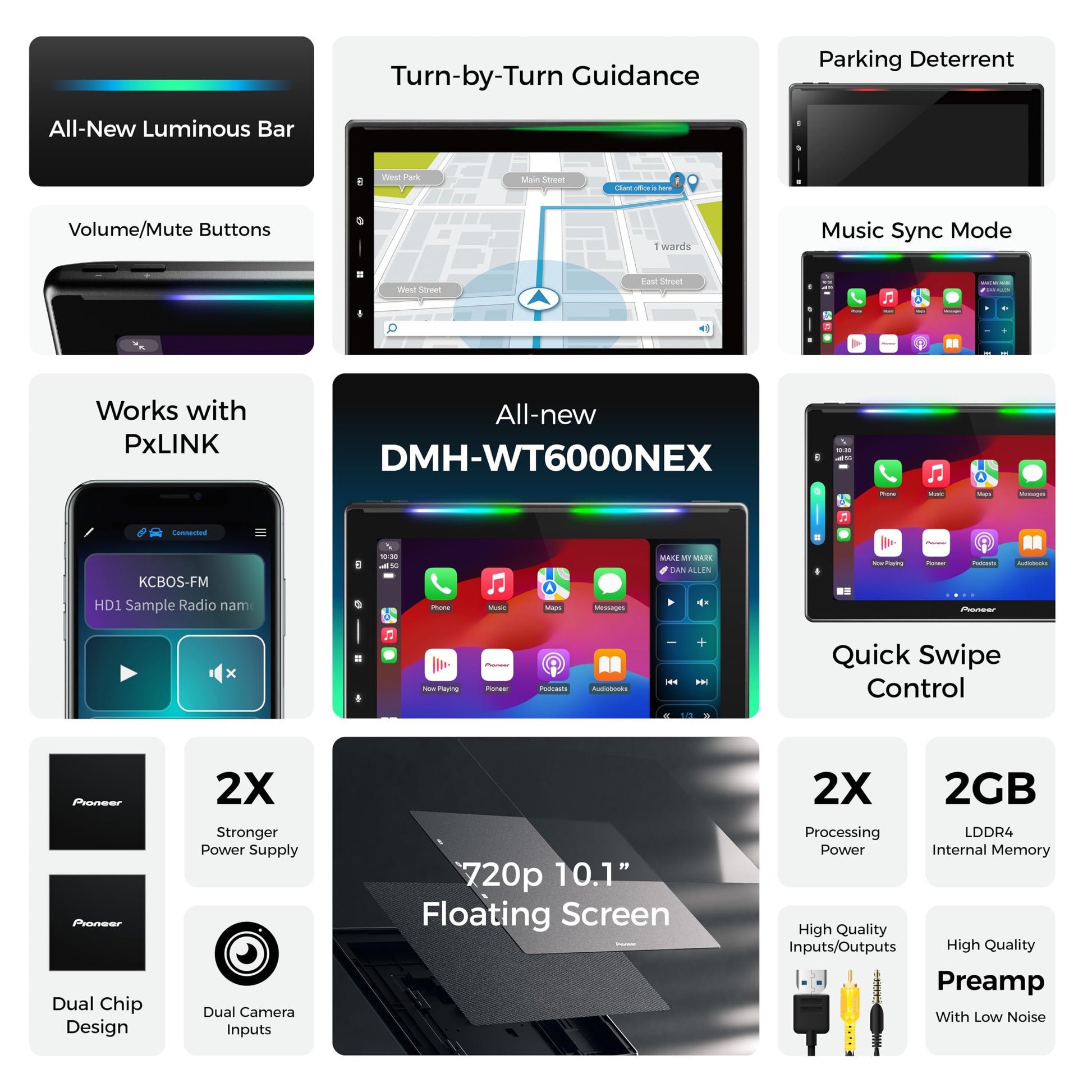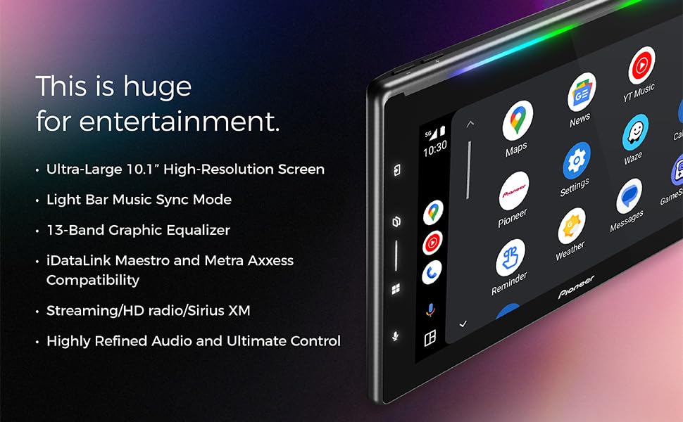 Pioneer DMH-WT6000NEX Digital Multimedia Receiver with Wireless Apple CarPlay and Android Auto, 10.1" Floating Screen, Single-DIN, Built-in Bluetooth and WiFi, Luminous Bar