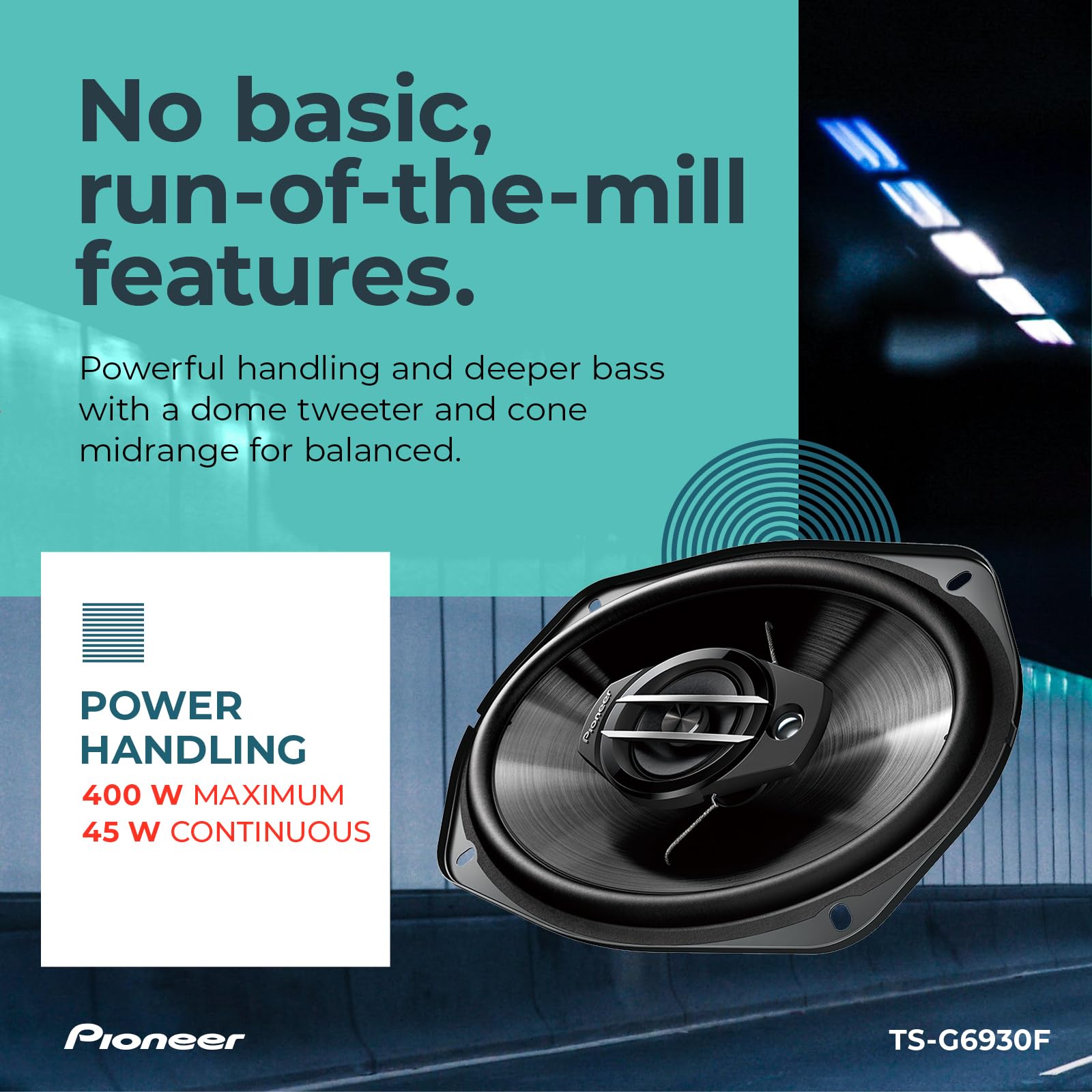 Pioneer TS-G6930F 3-Way Coaxial Car Audio Speaker, Full Range, Clear Sound Quality, Easy Installation, Enhanced Bass Response, Black 6” x 9” Oval Speaker
