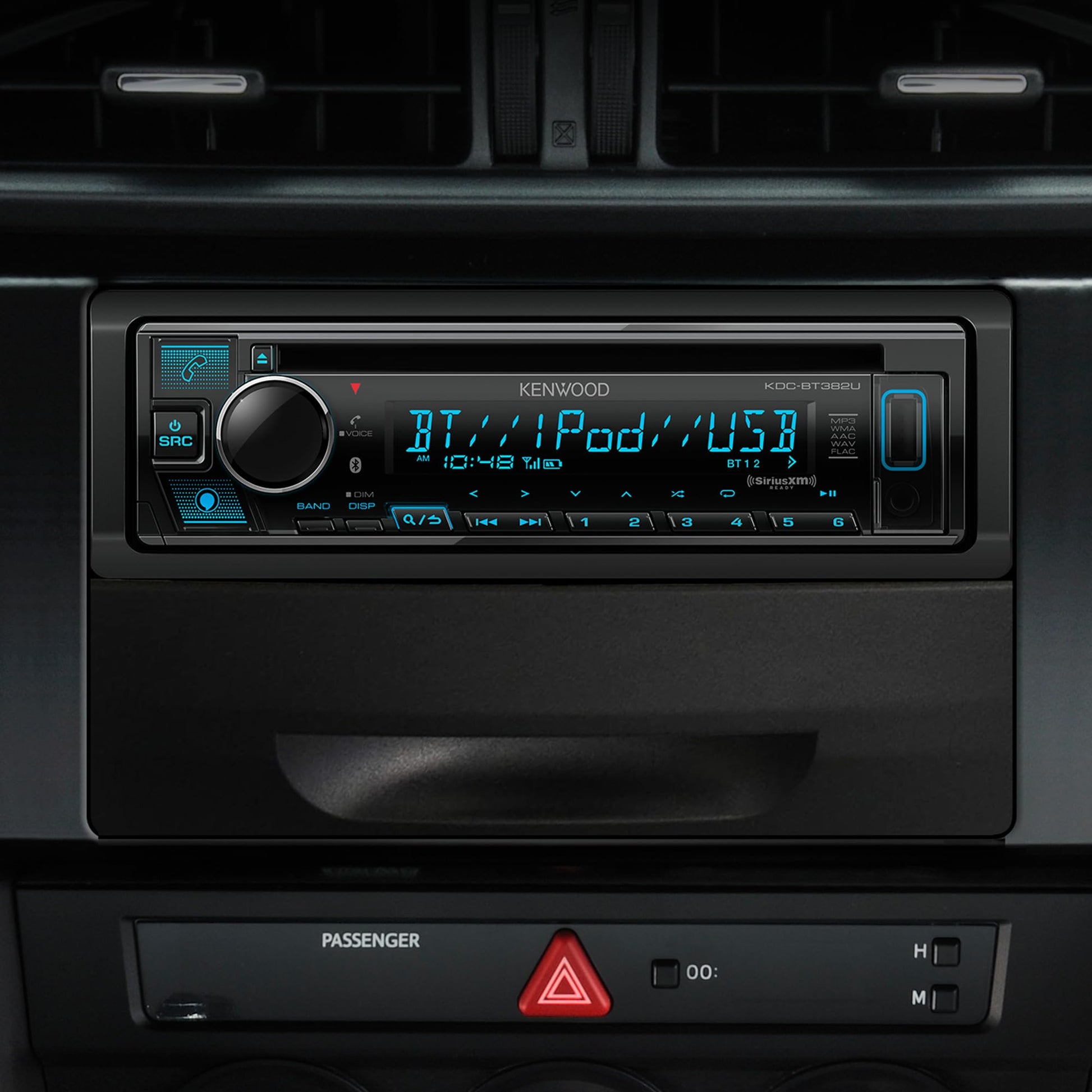 The KENWOOD KDC-BT382U combines modern convenience with classic functionality in an AM/FM CD receiver. Alexa voice control lets you play music, control smart home devices, and more, while the detachable face ensures security. Its clear 13-digit LCD display makes it easy to view your music information and settings, creating a simple, connected driving experience.