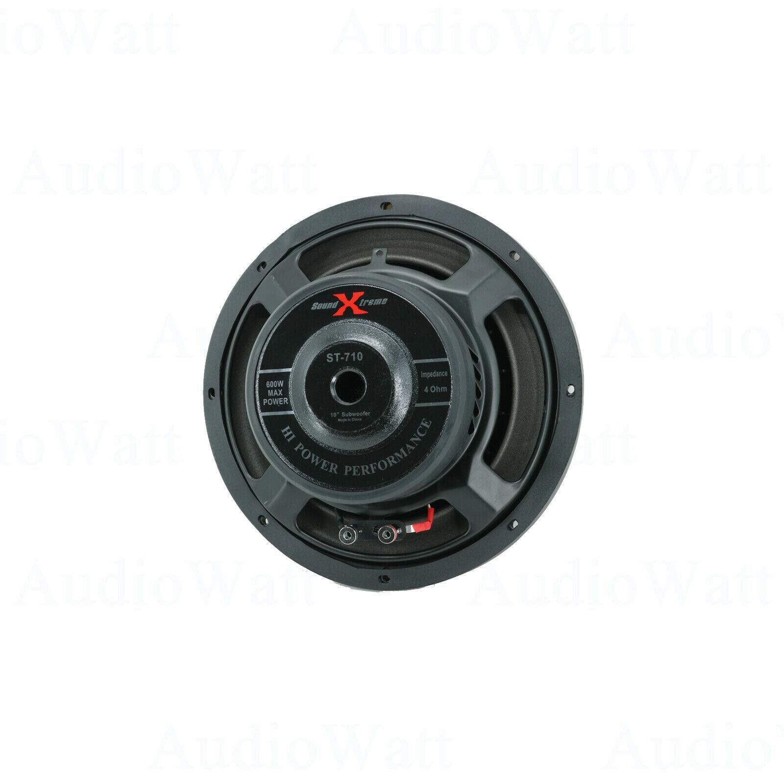 Transform your car’s audio system with the SoundXtreme ST-710 10-Inch Subwoofer. Designed for optimal bass performance, this shallow-mount, ultra-slim subwoofer delivers 800 watts of peak power handling. With a 4-ohm voice coil and a polypropylene woofer cone, it produces deep, thumping bass that adds a new dimension to your music. Whether you're cruising through the city or hitting the road, the ST-710 ensures you experience low distortion and rich, true bass for a fuller sound. Its vented motor structure improves heat dissipation, boosting power handling and keeping your subwoofer performing at its peak for longer.