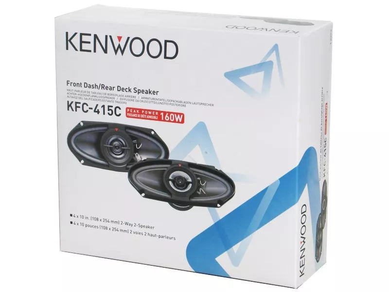 High-Performance 2-Way Kenwood Car Speakers: The Kenwood KFC415C 4x10" car speakers deliver exceptional sound quality with a poly woofer and polyamide balanced dome tweeter. They handle up to 160 watts peak power, ensuring that you get impressive volume and clarity for a premium audio experience in your vehicle.