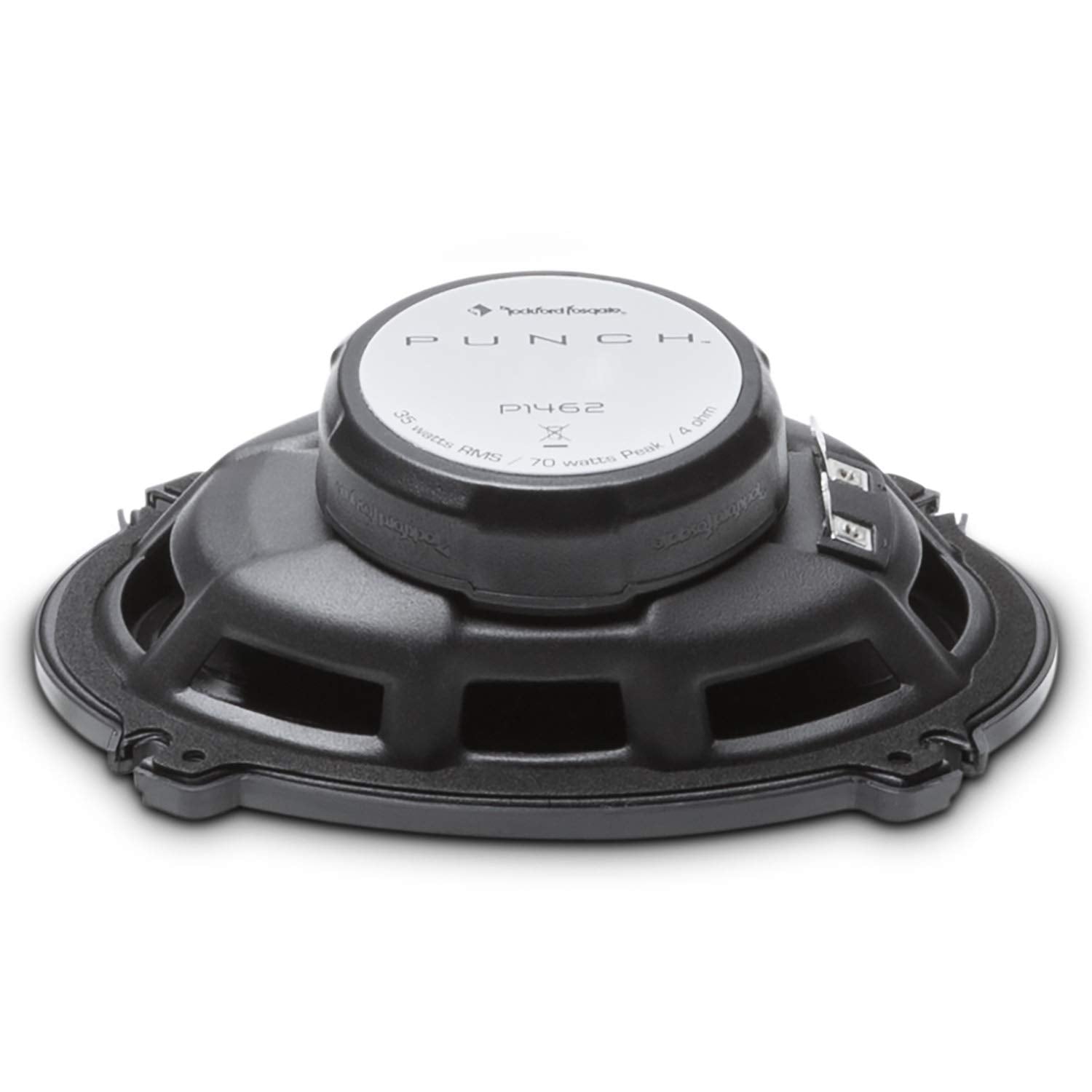 The Rockford Fosgate Punch P1462 4 x 6-inch full-range coaxial speakers are designed to replace your factory-installed speakers with high-quality audio performance. Offering 35 Watts RMS and 70 Watts Max power handling, the P1462 provides crisp, balanced sound with deep bass and clear highs. These speakers come as a pair and include mounting hardware for an easy installation. Featuring Rockford’s renowned build quality, they are the perfect choice for enthusiasts seeking to enhance their in-car sound system.