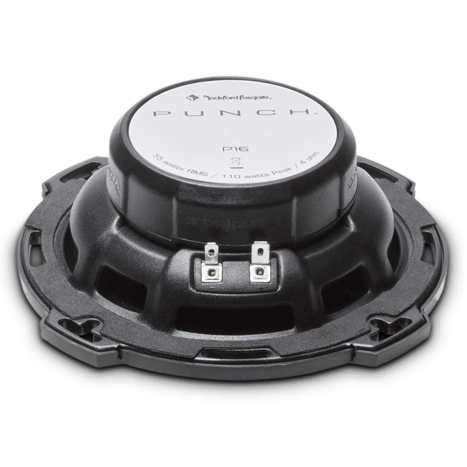 The P16 speakers are built to last, featuring Rockford Fosgate’s signature durability and sound quality. With a mounting diameter of 5.05 inches and a mounting depth of 1.93 inches, they fit securely in most factory speaker locations. These speakers come with a butyl rubber surround that enhances their longevity while maintaining premium sound performance. Their 2-way design provides rich, full-range audio with enhanced midrange clarity and high-frequency detail, ensuring a superior listening experience in your vehicle.