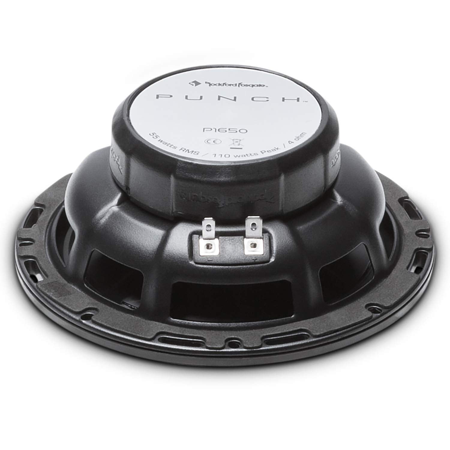 The Rockford Fosgate Punch P1650 is a high-performance 6.5-inch full-range coaxial speaker designed to replace factory-installed speakers with superior sound quality. With 55 Watts RMS and 110 Watts Max power handling, these speakers provide clear, balanced sound for an enhanced listening experience. The package includes mounting hardware and grilles, making installation quick and easy. Designed for a wide range of vehicles, including U.S., European, and import models, the P1650 is optimized for perfect fitment and sound.