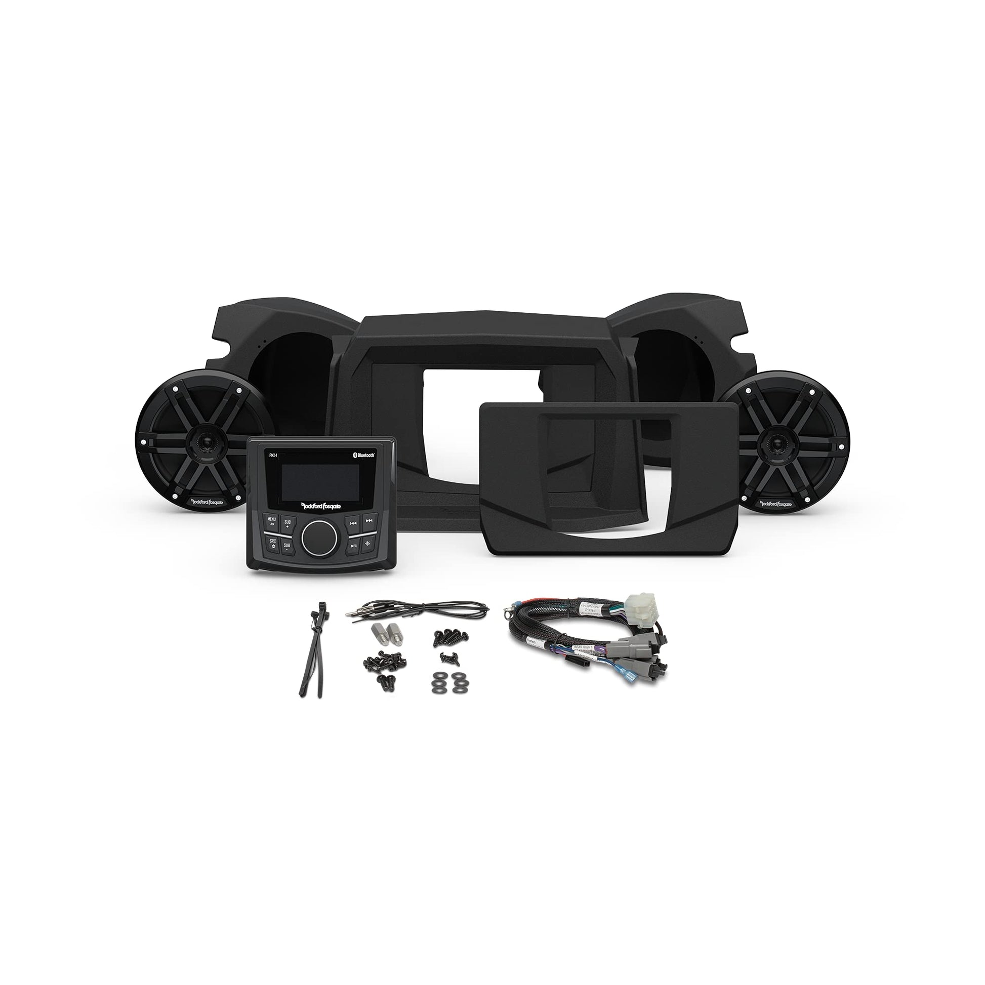 Elevate your Polaris RZR audio experience with the Rockford Fosgate RZR14-STG1 Stage 1 Audio Kit. This complete kit is designed to deliver premium sound while enhancing your off-road adventures. The package includes the PMX-1 marine grade media receiver, which features a 2.3" dot matrix display, Bluetooth connectivity, and multiple inputs such as AUX and USB, providing seamless integration into your RZR dash using the included RZR14-DK custom molded dash kit. The PMX-1 allows you to stream music, access radio stations, and connect multiple devices, so you can enjoy your favorite tunes while out on the trail.