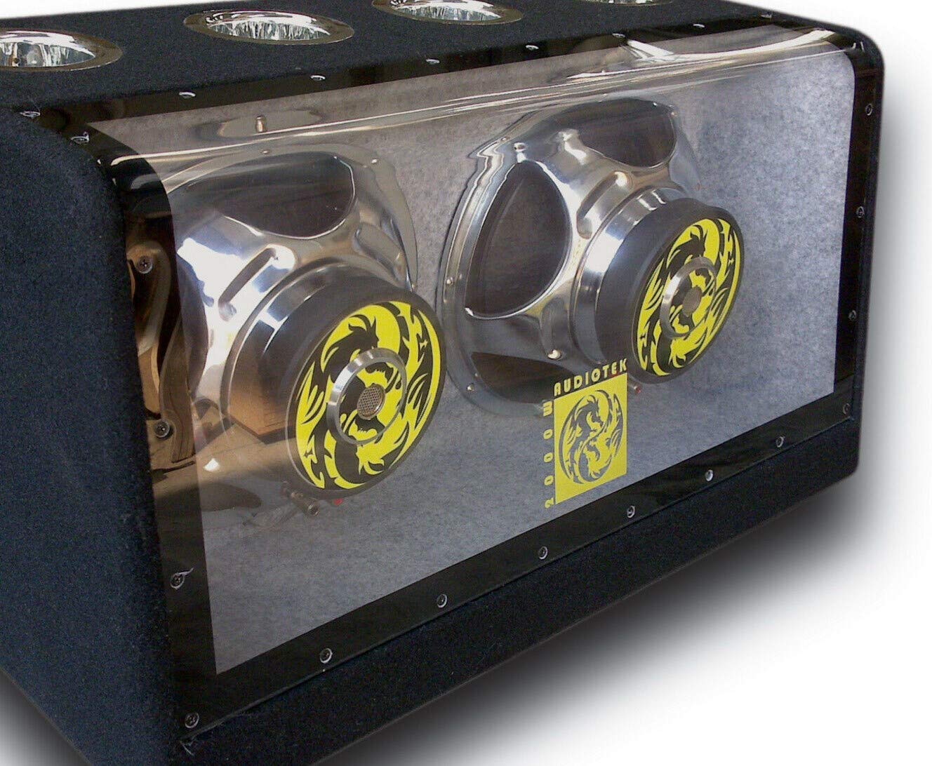 Elevate your car audio system with the Audiotek AT-510FB Dual 10" Subwoofer Box. Offering 1600 watts max power, this band-pass vented enclosure is engineered to deliver powerful, clean bass. The competition-grade pressed paper cone ensures durable, accurate sound production while the foam edge non-press material contributes to the subwoofer's lightweight design. This subwoofer provides great value at an affordable price, making it an ideal choice for those looking to upgrade their car audio without breaking the bank.