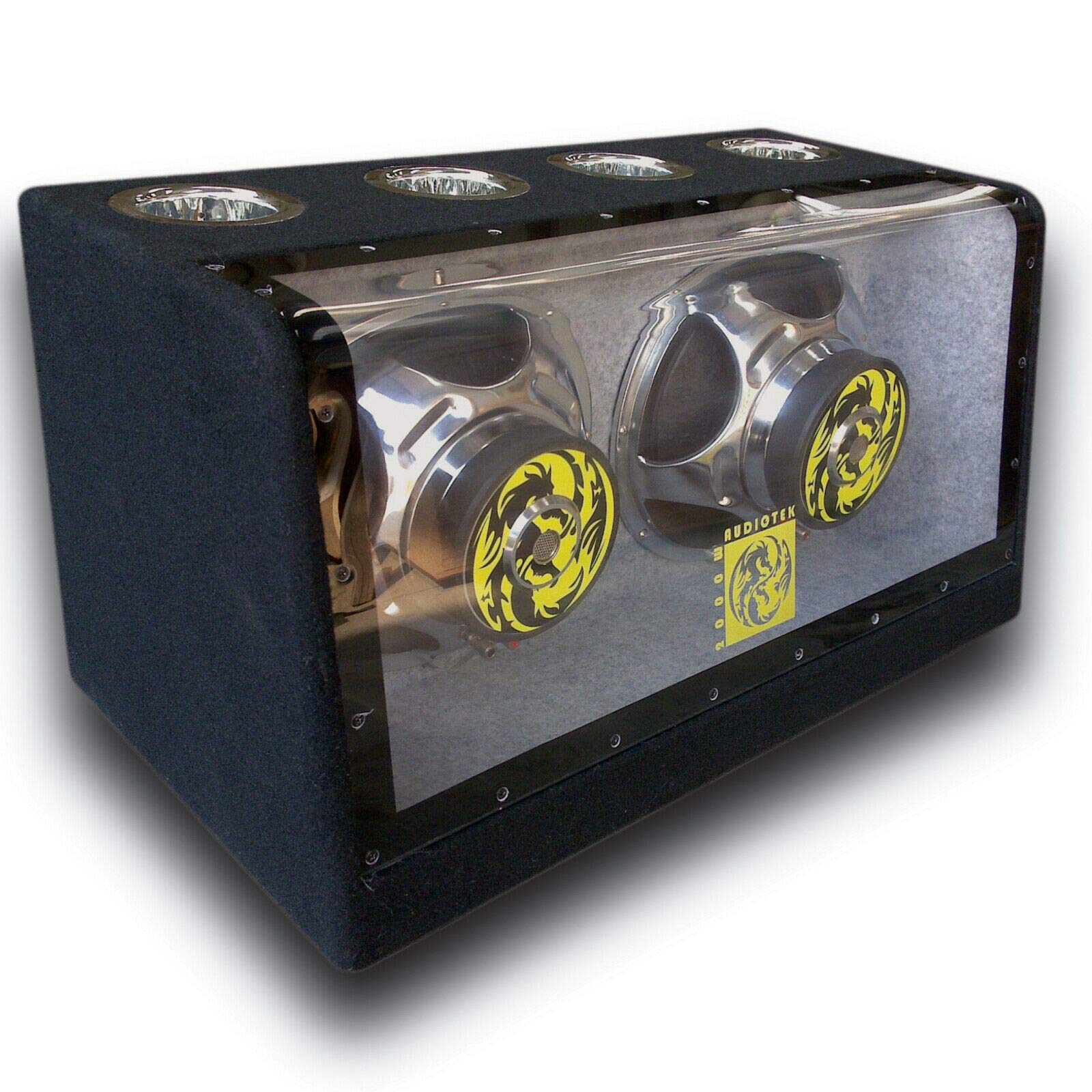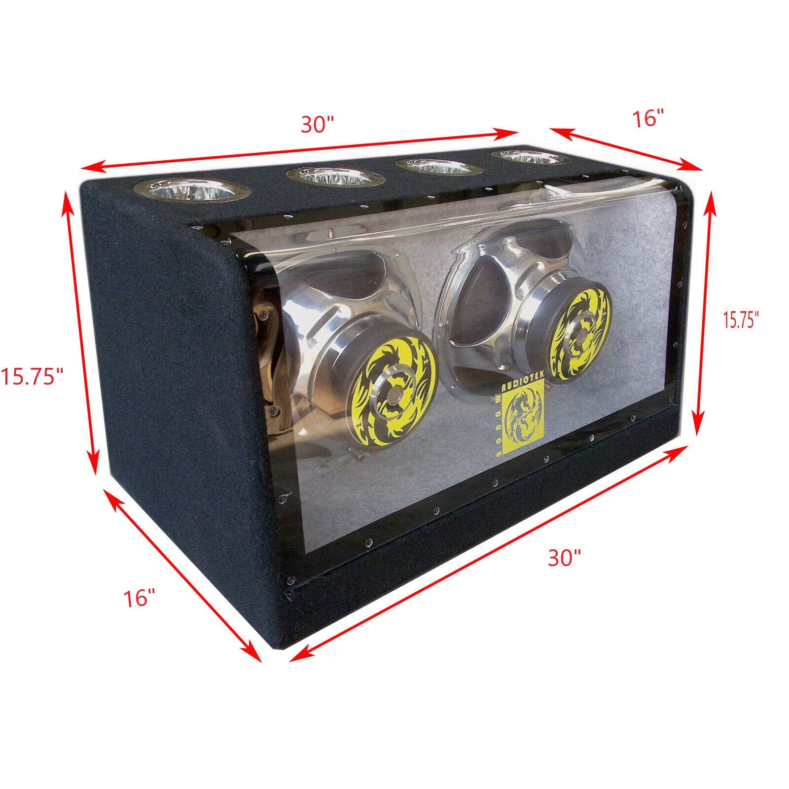 Audiotek AT-512FB Dual 12" 2000W Max Power Band Pass Vented Sealed Premium Vehicle Subwoofer Box – Loaded with Dual 4 Ohm Subwoofers