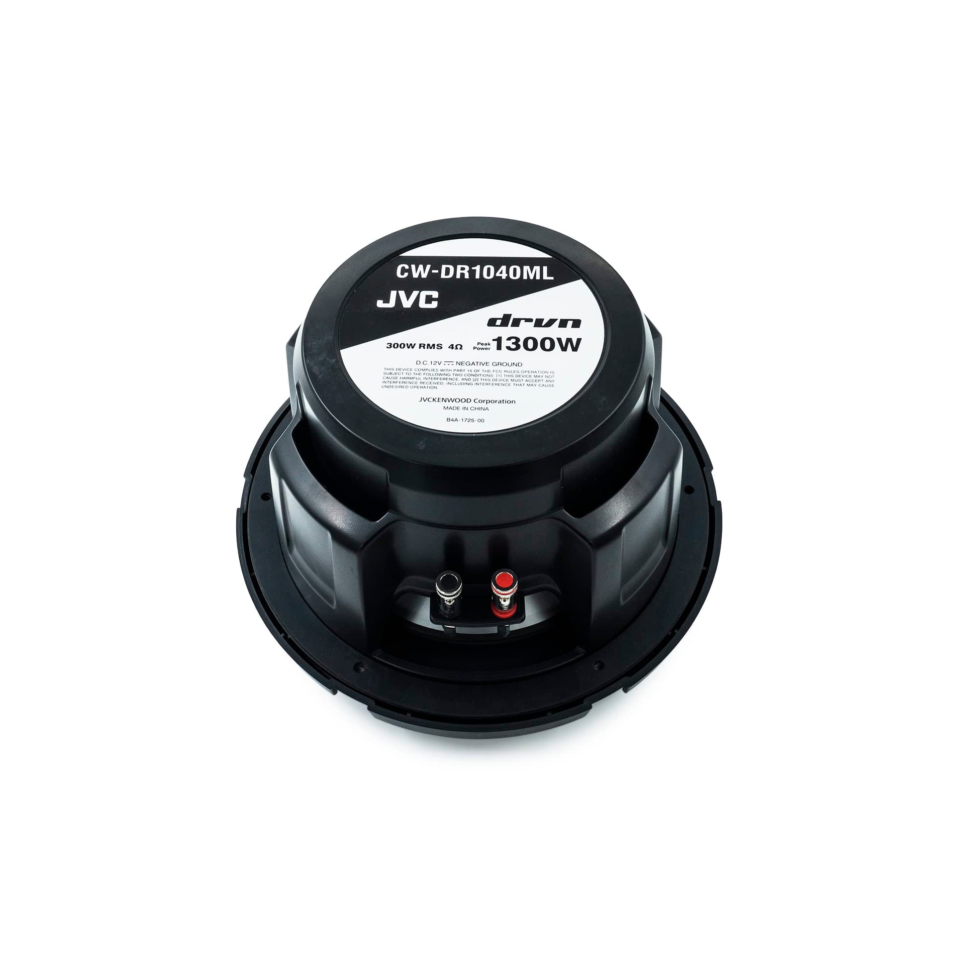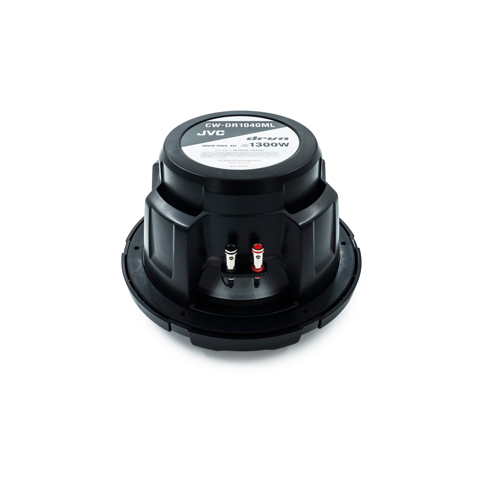 The JVC CW-DR1040ML is a 10-inch outdoor marine/car audio subwoofer built to deliver booming bass in any environment. Designed with a polypropylene cone, rubber surround, and a ferrite magnet, this subwoofer provides durability and powerful sound reproduction for your marine stereo or outdoor system.