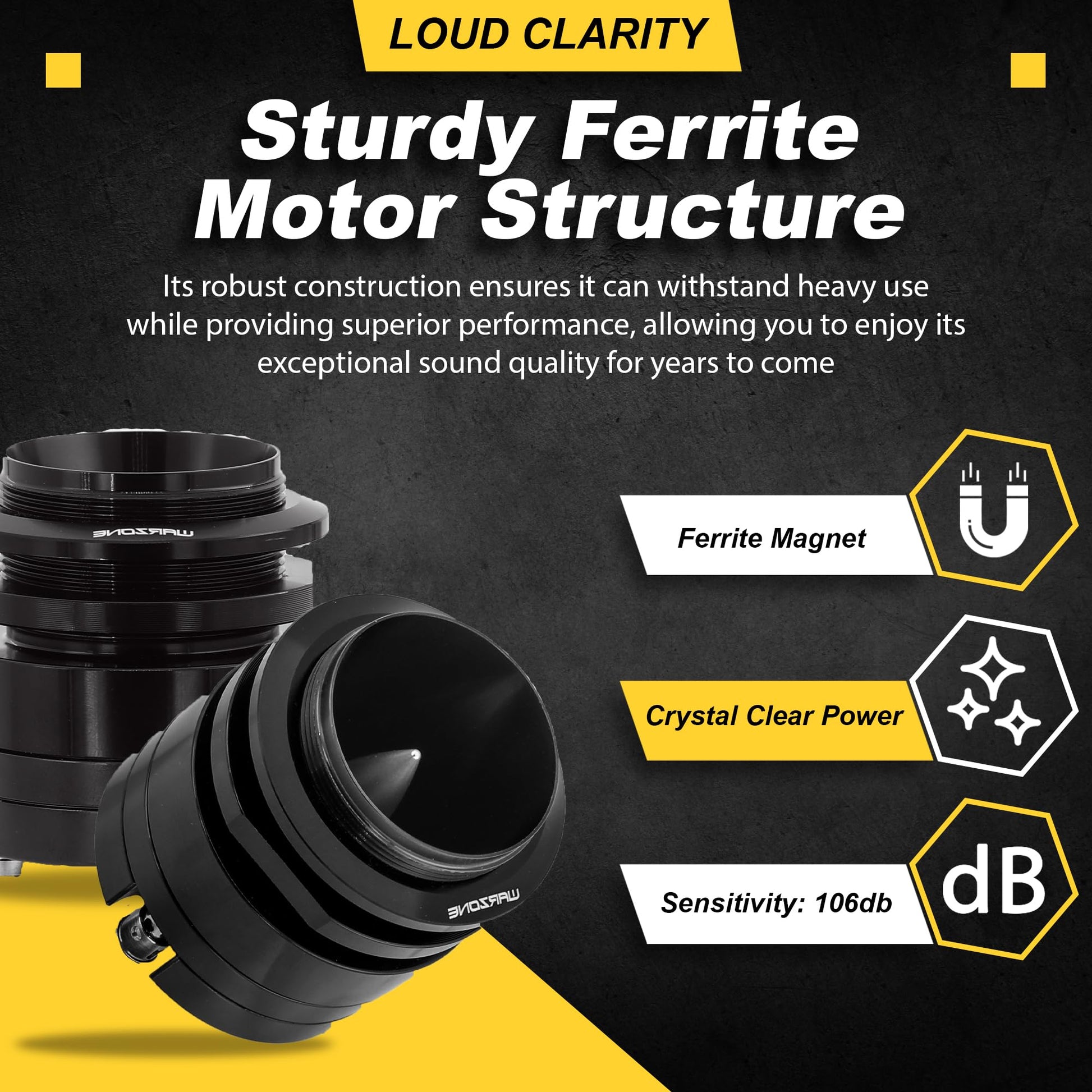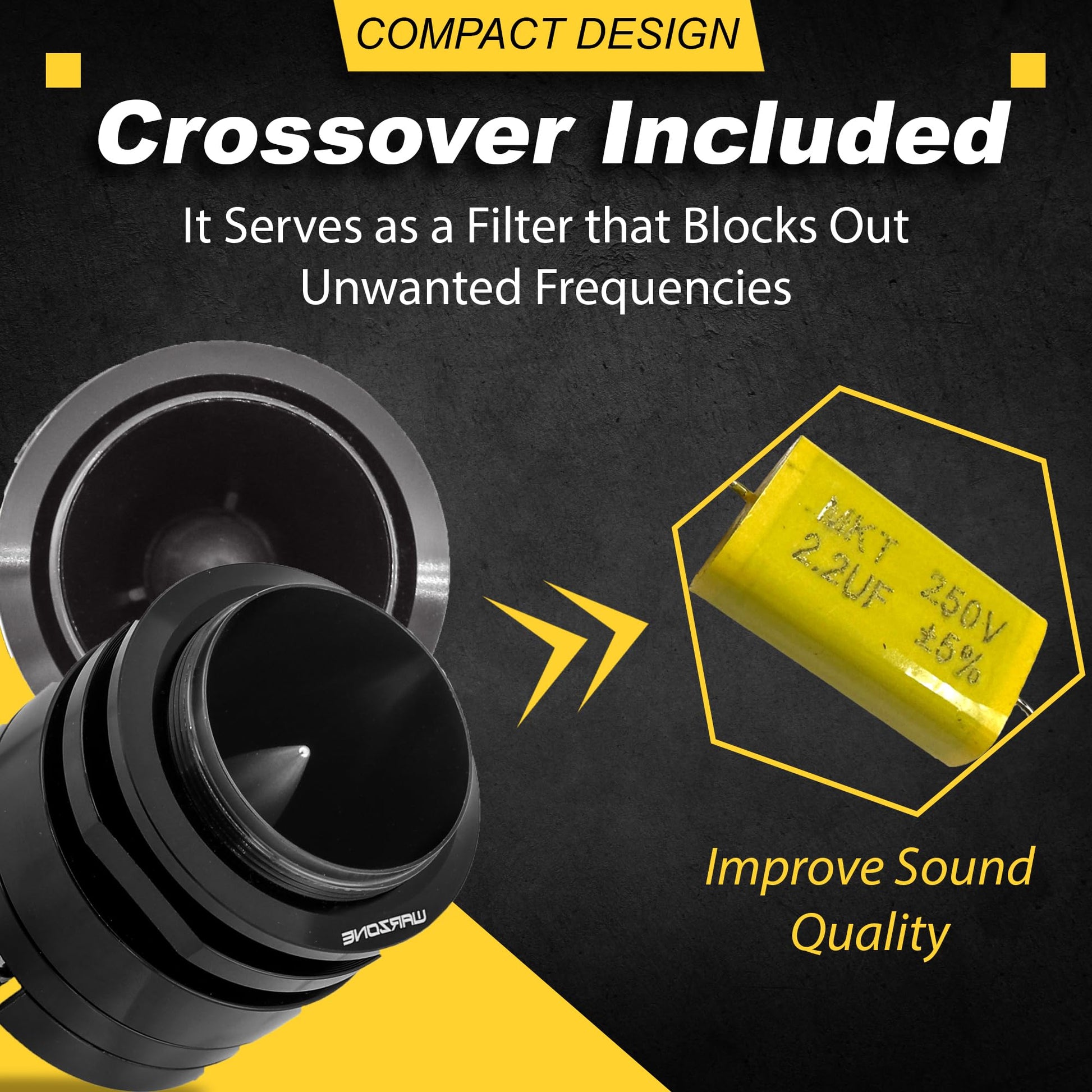 The Gravity Warzone WZ45TW is built for those who demand exceptional audio performance. With its robust 1500W max power and 106dB sensitivity, this super tweeter captures every detail of your audio with remarkable clarity. The titanium diaphragm ensures consistent sound quality, while the compact design simplifies installation. Whether you’re upgrading your car’s sound system or creating a professional audio setup, the WZ45TW guarantees dynamic and immersive sound reproduction.