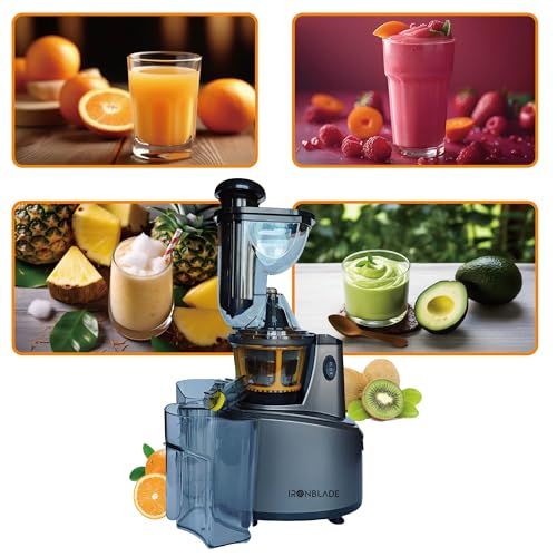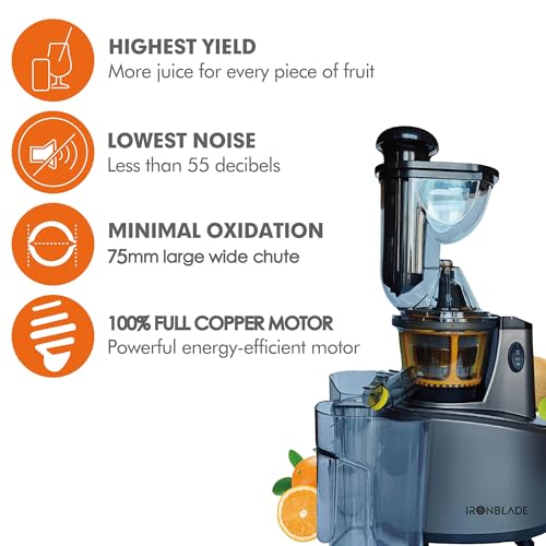 IronBlade IBLJU20 Cold Press Slow Juicer – High-Yield Extraction, 75mm Wide Chute, Quiet 55dB Operation, Full Copper Motor, BPA-Free & Easy to Clean
