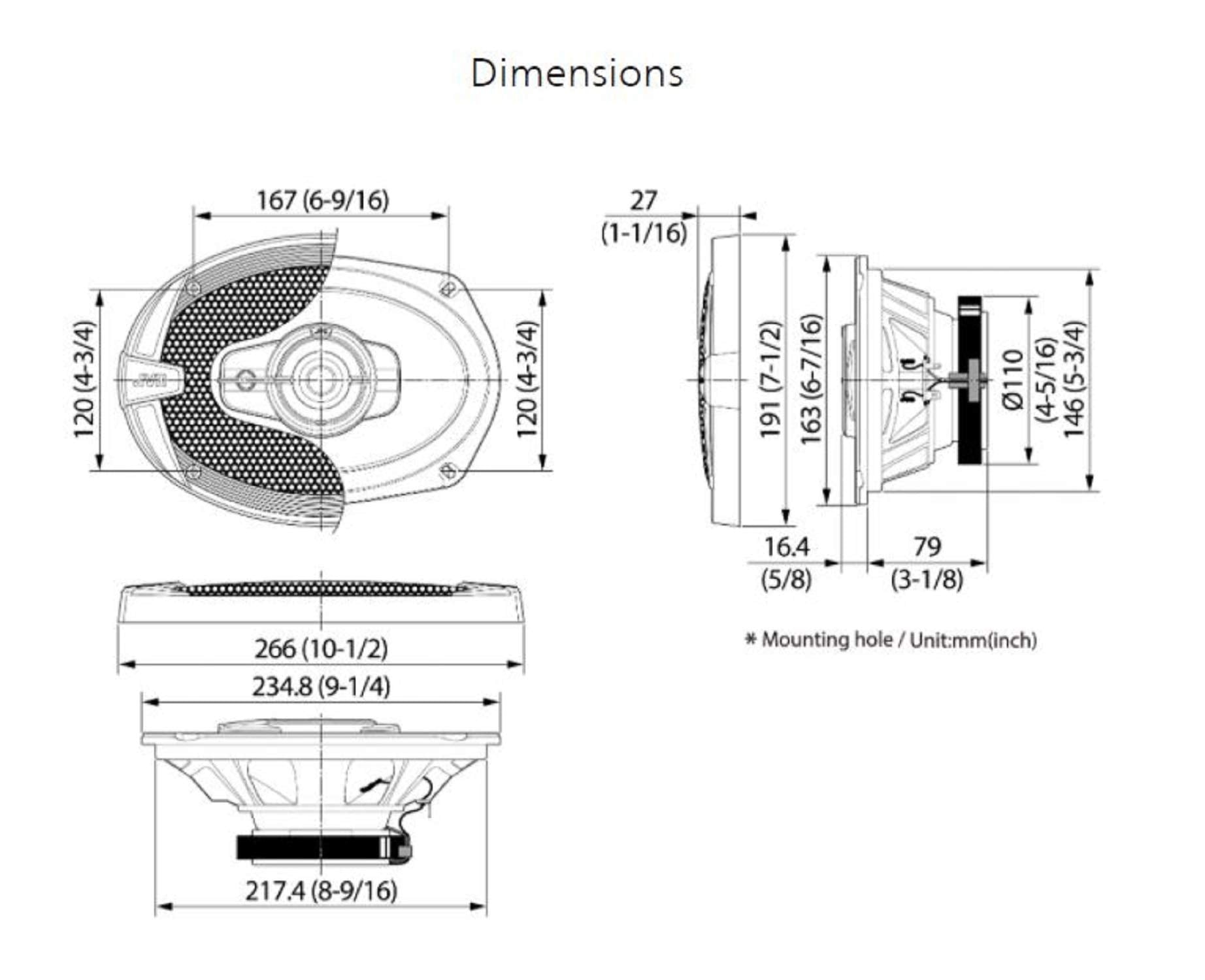 - 6"x9" 3-way coaxial design for a wide range of sound reproduction.