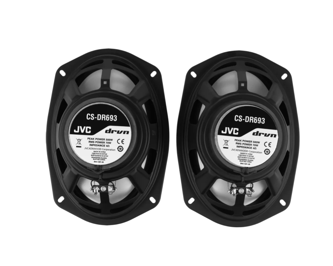The JVC CS-DR693 6"x9" 3-way coaxial speakers are engineered for easy installation in most factory locations. With a low-profile tweeter height, they fit seamlessly into your vehicle while providing a sleek and professional look. The durable black painted yoke and plate design not only enhance durability but also optimize heat dissipation within the magnetic circuit, ensuring long-lasting performance.