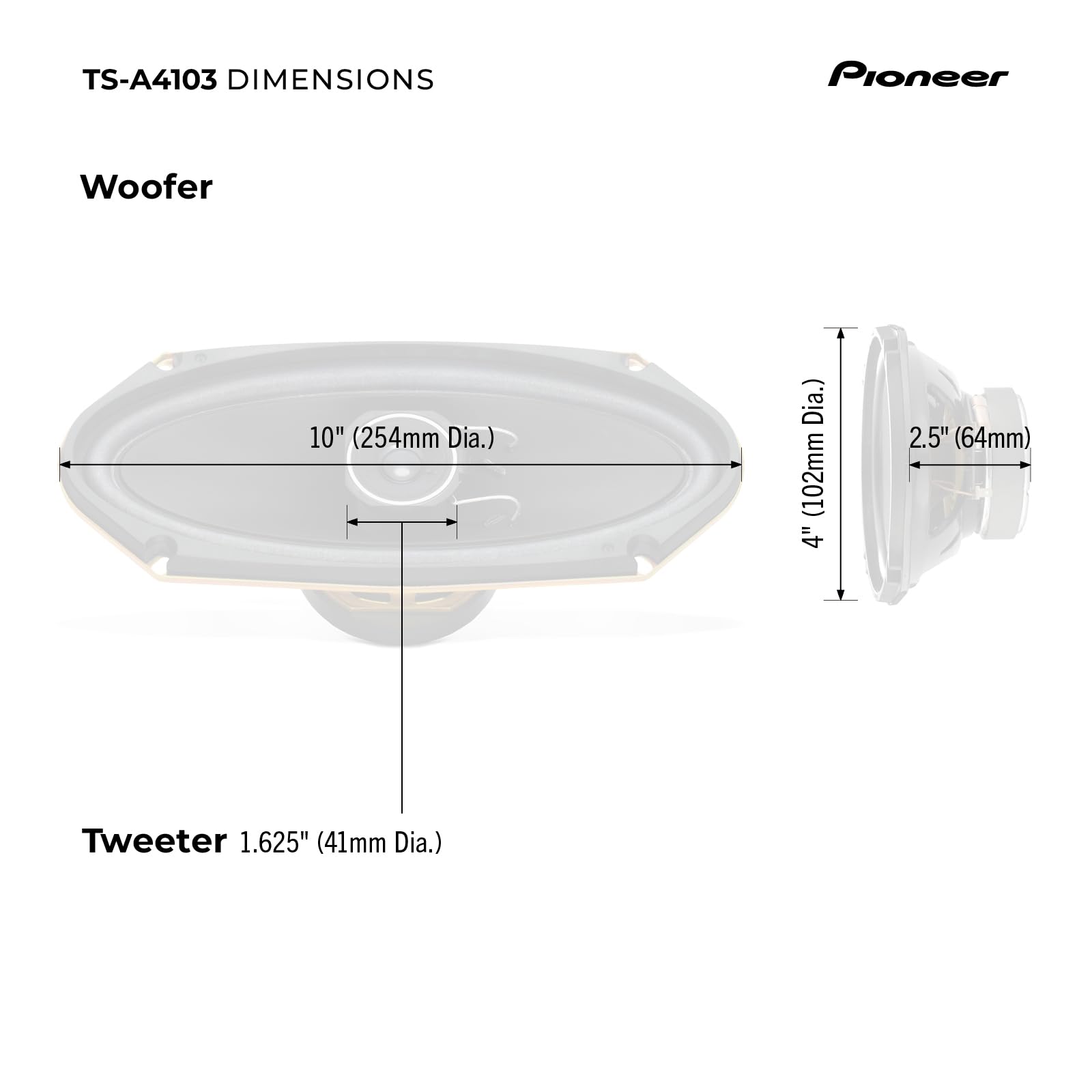 Pioneer TS-A4103, 2-Way Car Audio Speakers, 4 x 10” Full Range, Clear Sound Quality, Easy Installation, Enhanced Bass Response