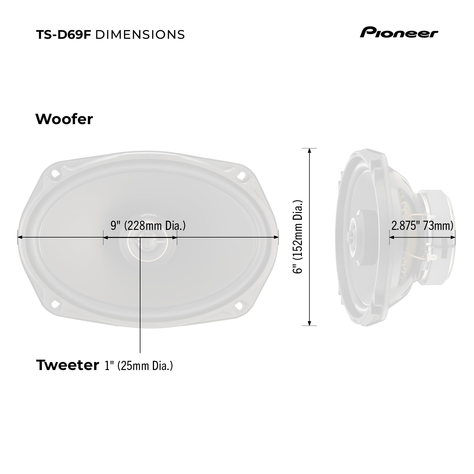 Pioneer TS-D69F 6 x 9" 2-Way Car Speakers, Full Range, Clear Sound Quality, Enhanced Bass Response, Easy Installation