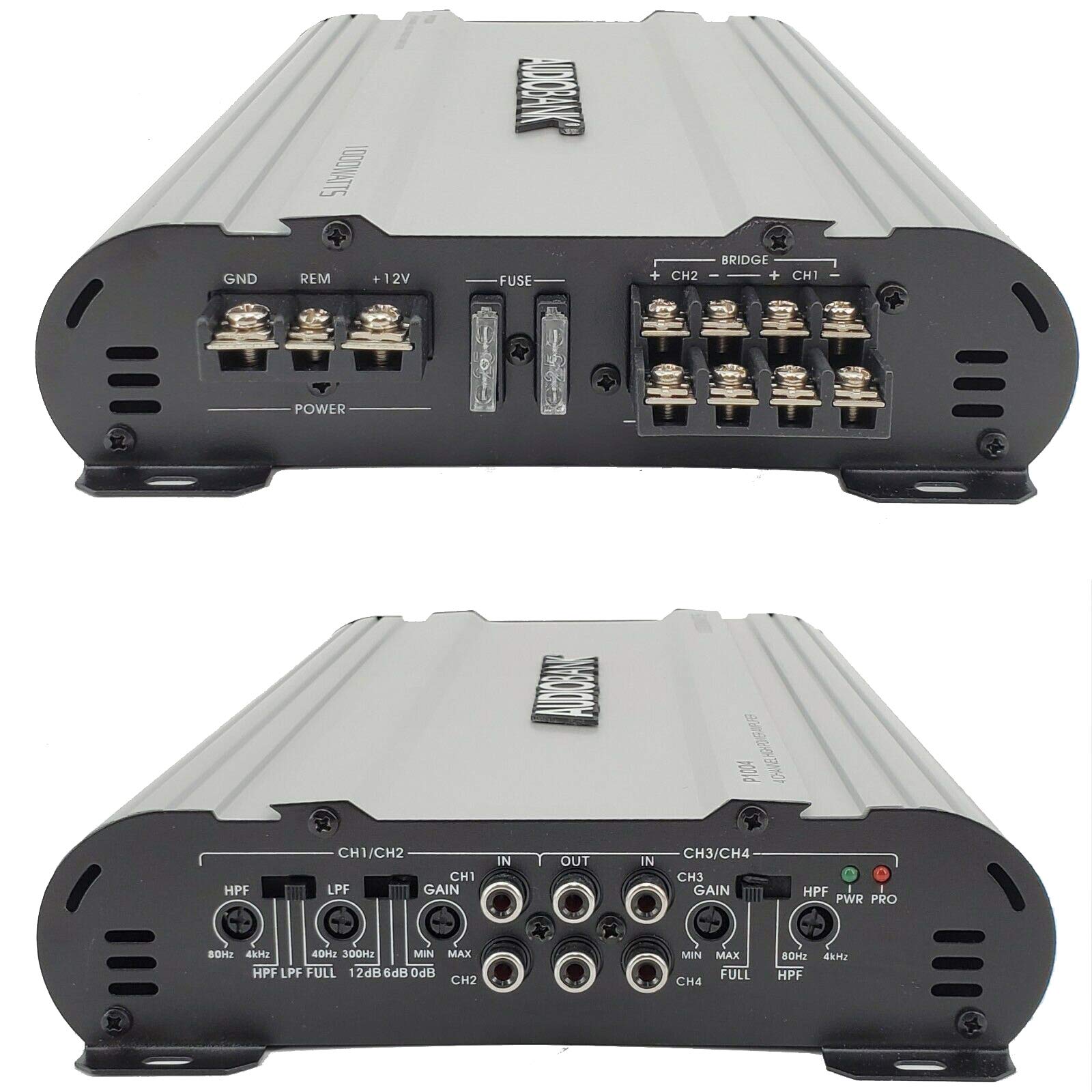 Audiobank P1004 4-Channel 1000W Bridgable Car Audio Stereo Amplifier – Class A-B, 2-Ohm Stable, Heavy-Duty Performance