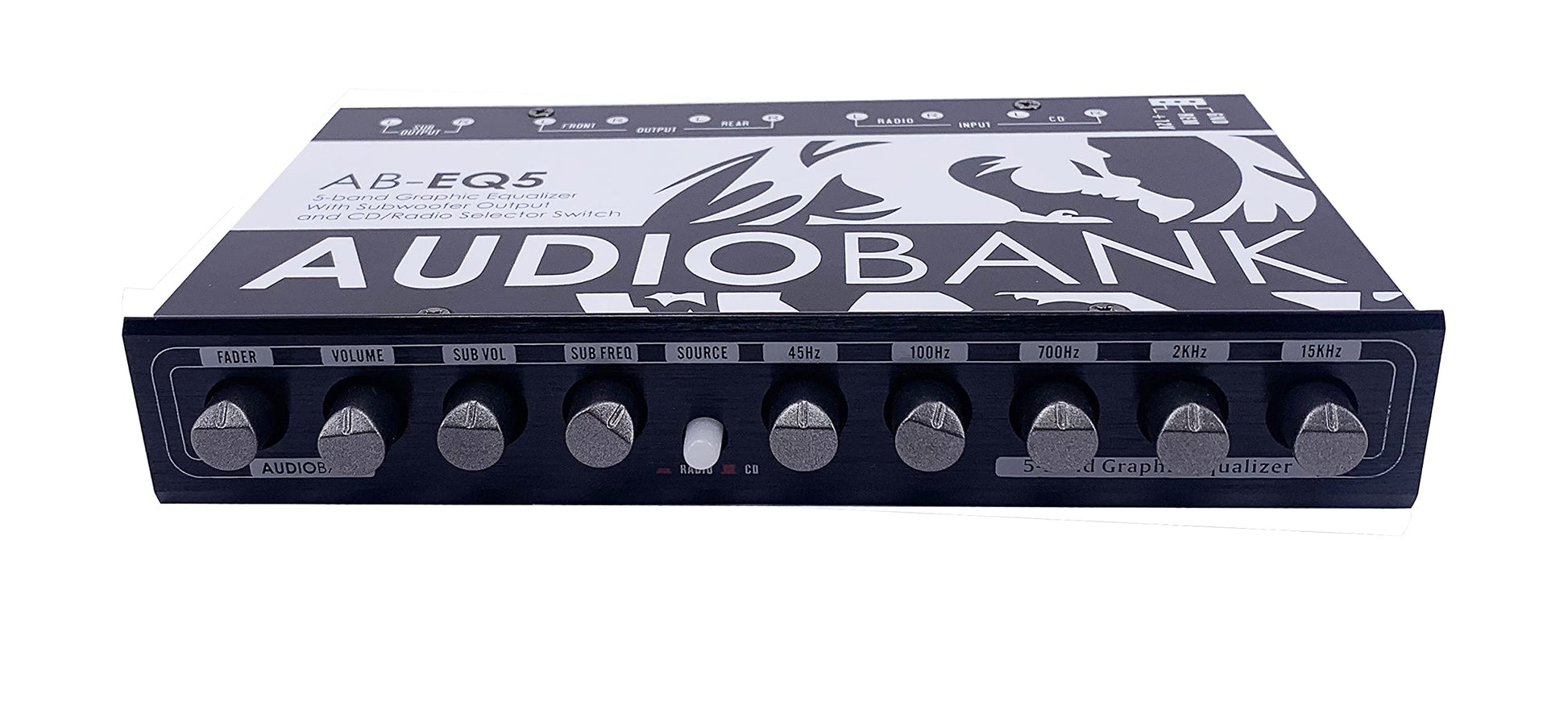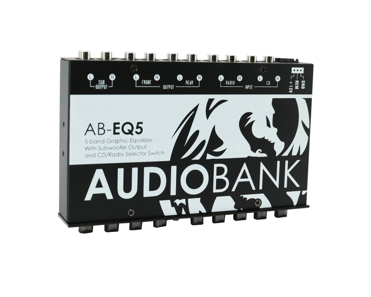 The Audiobank AB-EQ5 is a 5-band in-dash graphic equalizer designed to give you complete control over your car audio system. Featuring separate controls for your master system, this unit allows you to fine-tune each frequency range, from bass to treble, to match your personal sound preferences. Whether you're adjusting the low-pass filter for smoother bass or tweaking the mids for more clarity, this equalizer gives you the tools to shape your music exactly how you want it. Perfect for audiophiles who demand precision and flexibility.