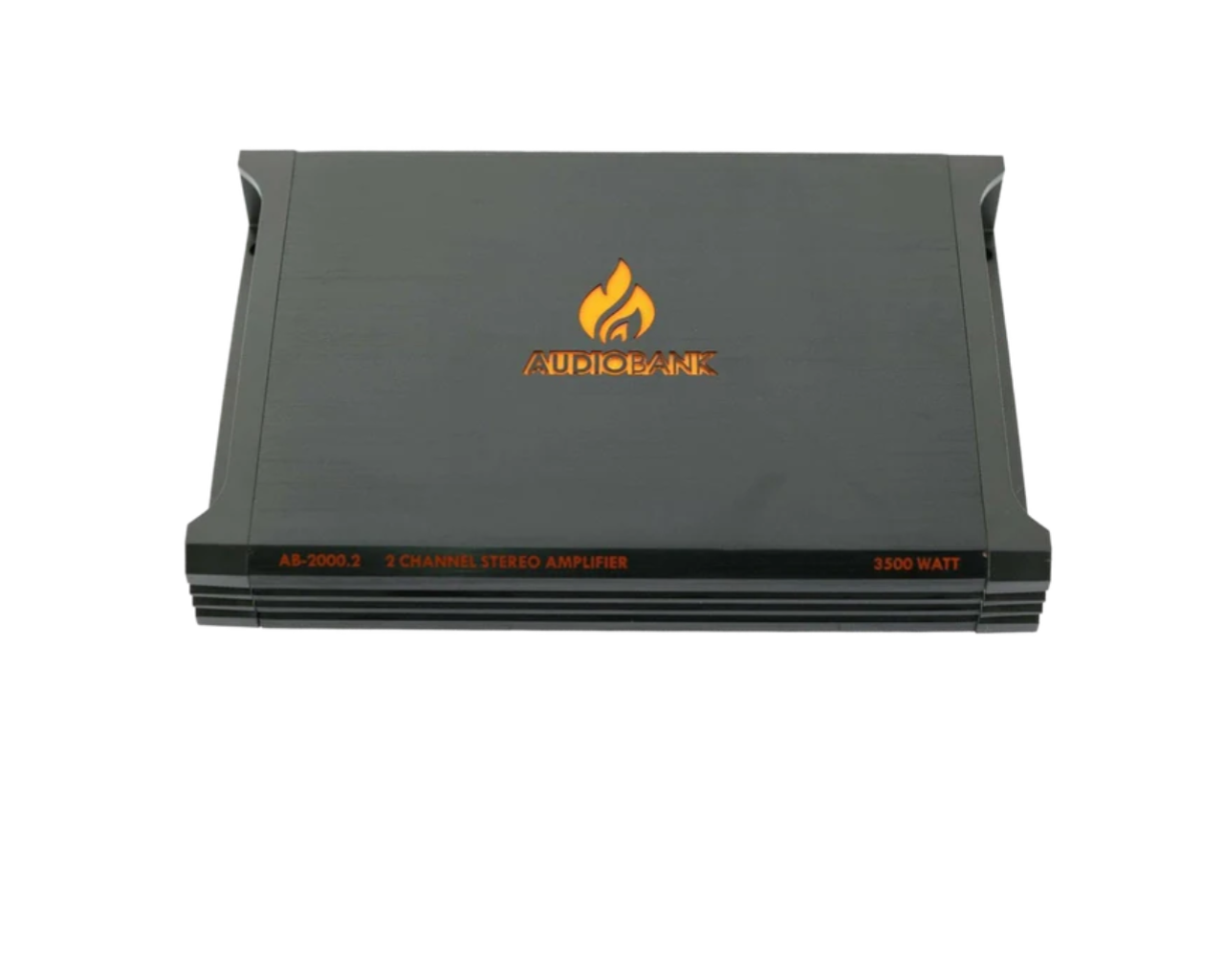 Audiobank AB2000.2 2-Channel 3500W Class A/B Car Audio Amplifier – Bridgeable, 2-Ohm Stable with Bass Control Knob