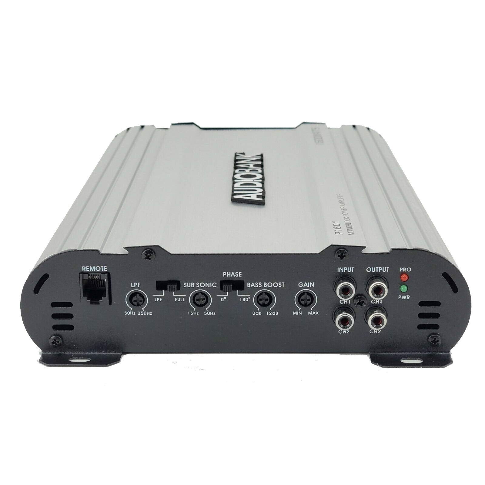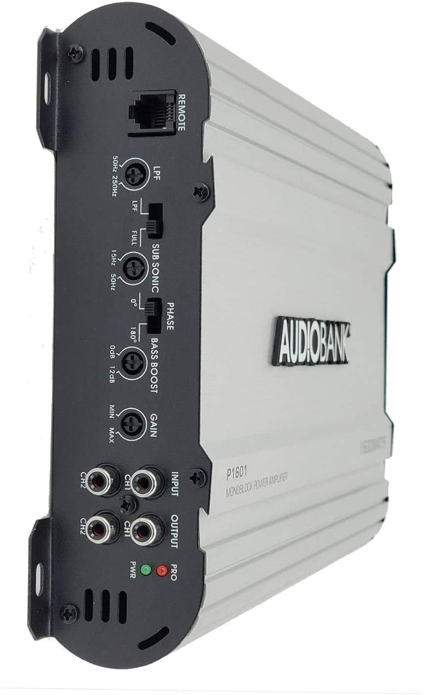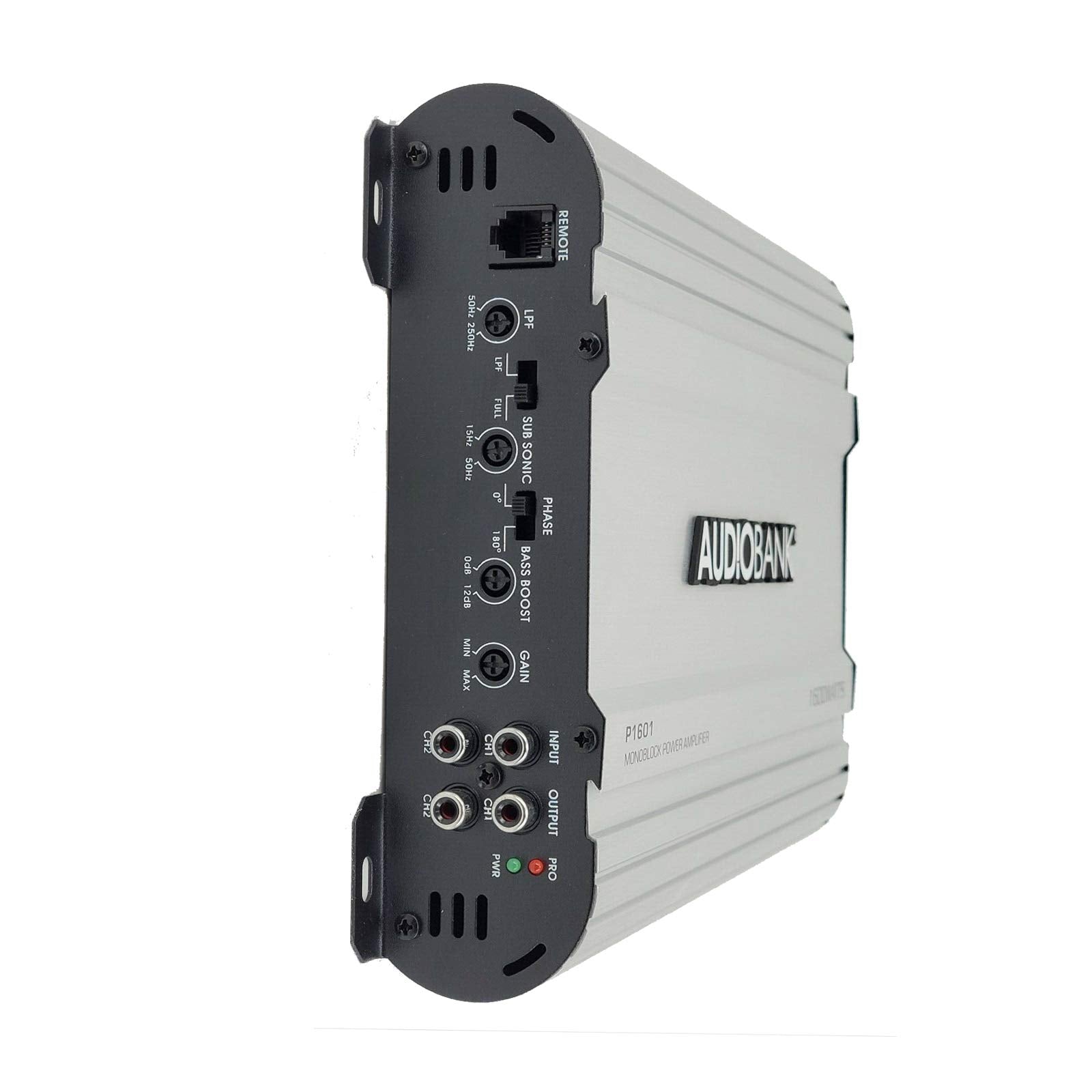 Audiobank P1601 Monoblock Amplifier – 1600W Max Power, Class AB MOSFET with Remote Subwoofer Control for Deep, Powerful Bass