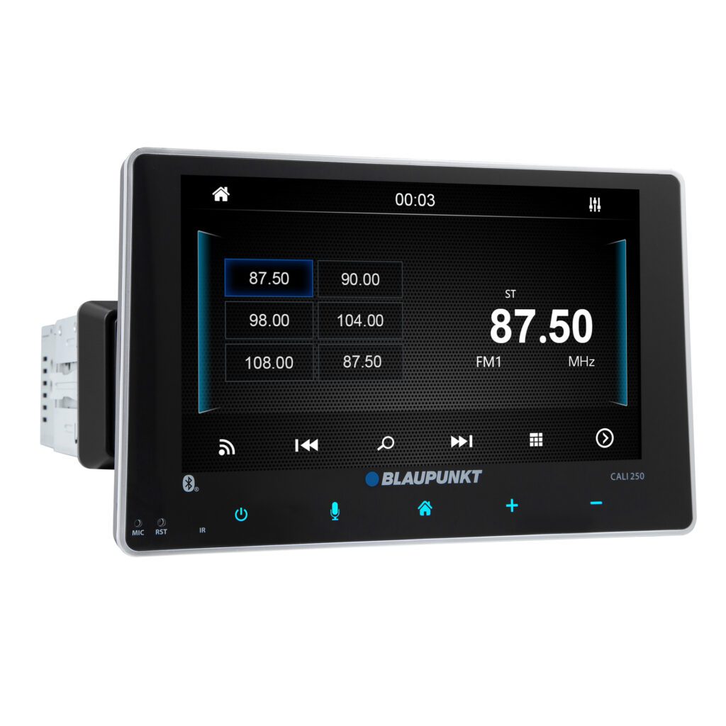 The Blaupunkt CALI 250 combines compact design with powerful performance. Featuring a 7” digital TFT touch screen display with a resolution of 1024 x 600 pixels, it delivers vibrant visuals and smooth interaction for all your media needs. The floating screen design, with adjustable height and angle, ensures a perfect viewing experience, while the 1-DIN chassis makes it compatible with a wide range of vehicle installations.