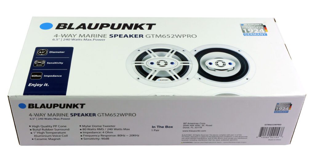 The Blaupunkt GTM652WPRO 6x5" 4-Way Car Speakers are engineered to provide an immersive sound experience, offering excellent audio quality with crisp highs, dynamic midranges, and powerful bass. With a 90 dB sensitivity rating and a wide frequency response of 80Hz to 20kHz, these speakers deliver clear, balanced sound across a wide range of frequencies. Whether you're enjoying deep bass or sharp treble, the GTM652WPRO ensures your music comes to life in your car.