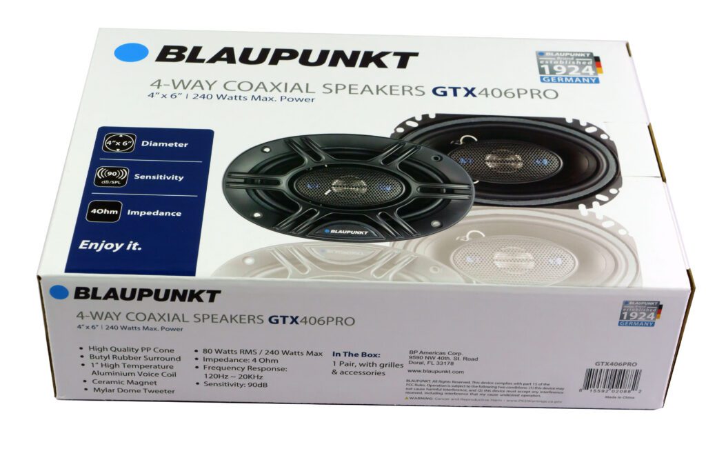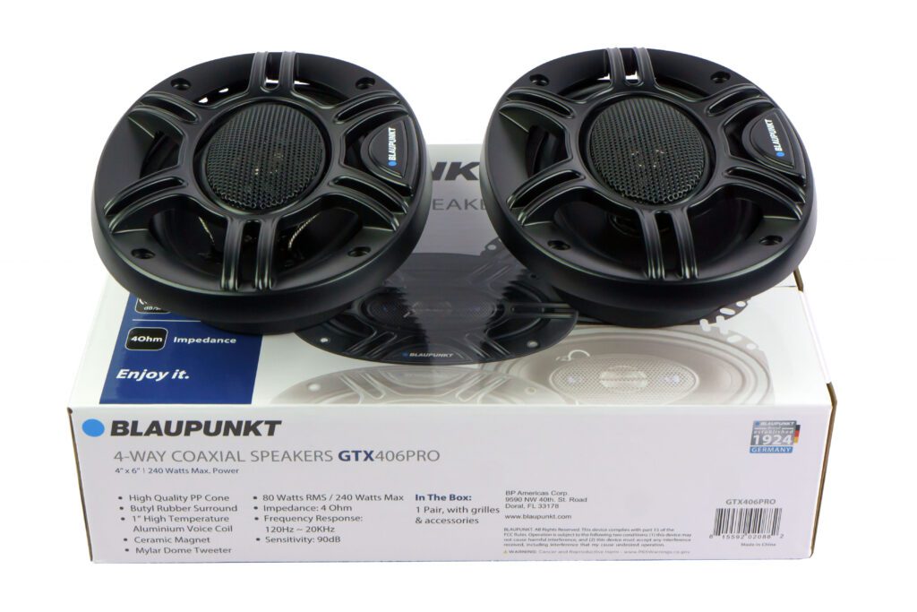 The Blaupunkt GTX-406PRO 4x6" 4-Way Car Speaker is engineered to deliver a dynamic and immersive sound experience. With a frequency response range from 120Hz to 20kHz, this speaker reproduces clear midrange, crisp highs, and solid bass, ensuring that all your favorite tracks sound vibrant and detailed. The 4-way design features dedicated components for each frequency range, which enhances clarity and ensures balanced sound, perfect for all genres of music.